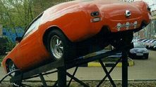 К сожалению, проект так и не был завершен до конца. У него не было интерьера, поэтому вместо прозрачных стекол использовали глухую тонировку. Мы также не уверены насчет того, мог ли хотрод самостоятельно передвигаться. Незавершенный автомобиль поставили на постамент возле автосервиса Алеа-Моторс, где он долгое время выполнял функции рекламного щита.
