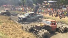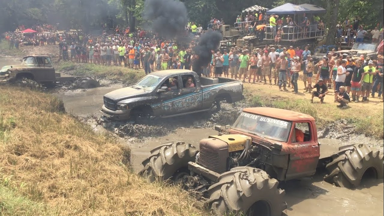 Внедорожники выстраиваются на берегу и стартуют практически одновременно. Пикап Ford на гигантских колесах проскакивает ров как-то очень легко, но что-то мешает ему взобраться на берег. Все другие участники намертво завязли в липкой грязи, выбраться из которой без посторонней помощи они уже не смогут.