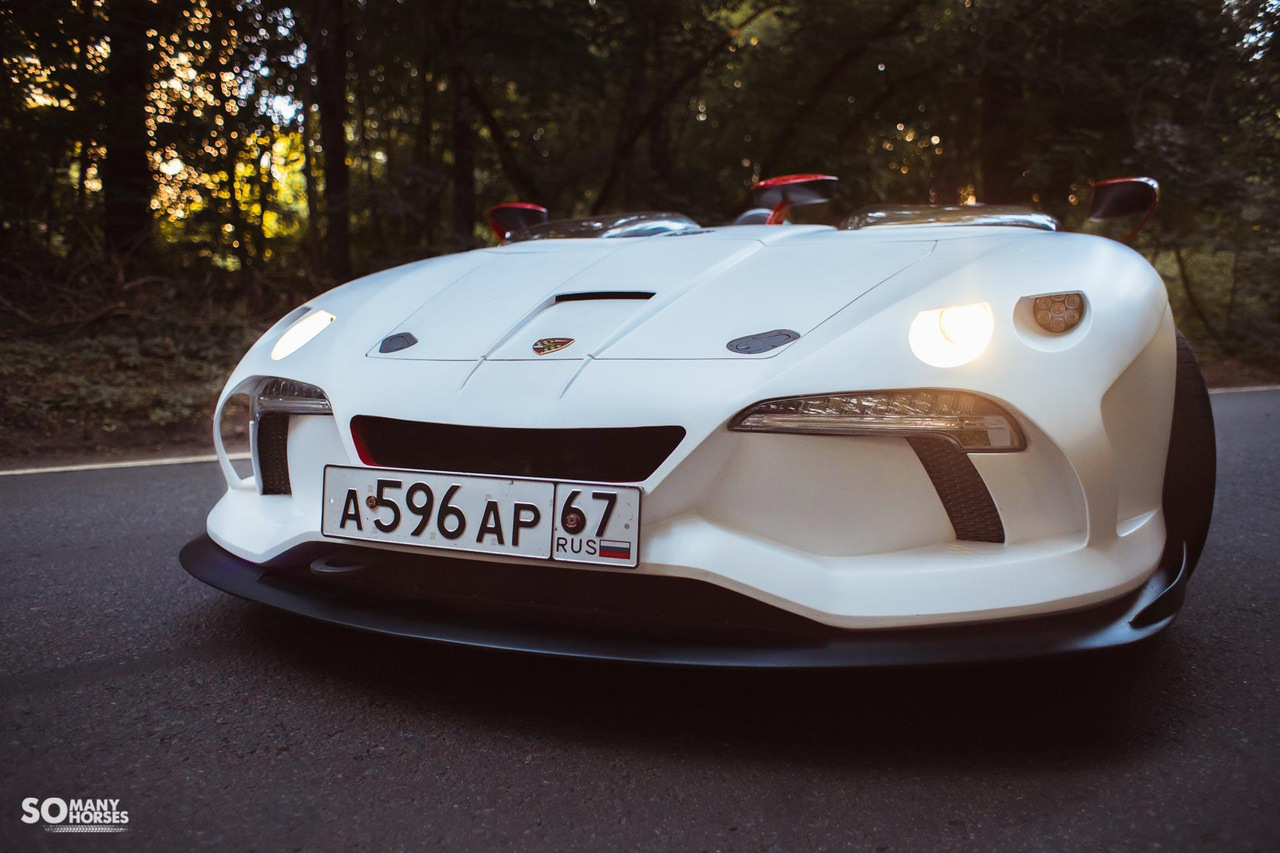 Задние фонари позаимствовали у купе BMW 6-серии, передние светодиодные подфарники — у Porsche 911, а сами линзы ближнего и дальнего света когда-то стояли в блок-фарах Peugeot 508. Кузовные панели, в основном, сделаны из стеклопластика, но часть элементов изготовили из карбона.