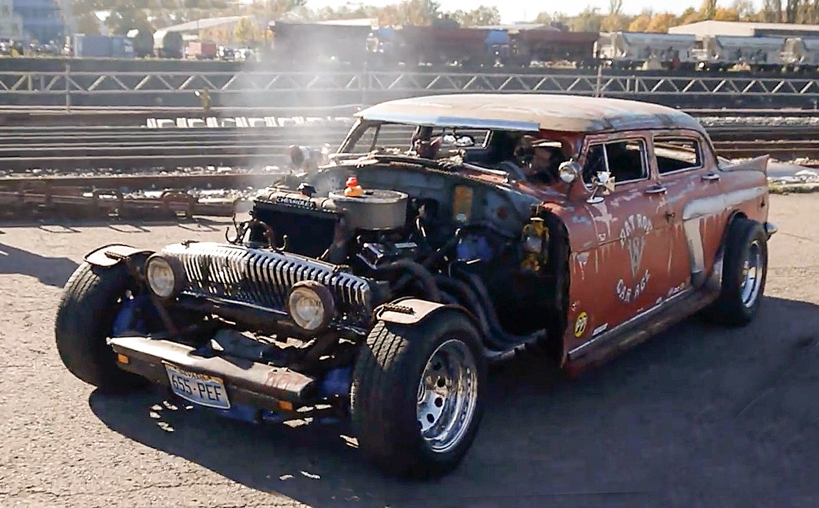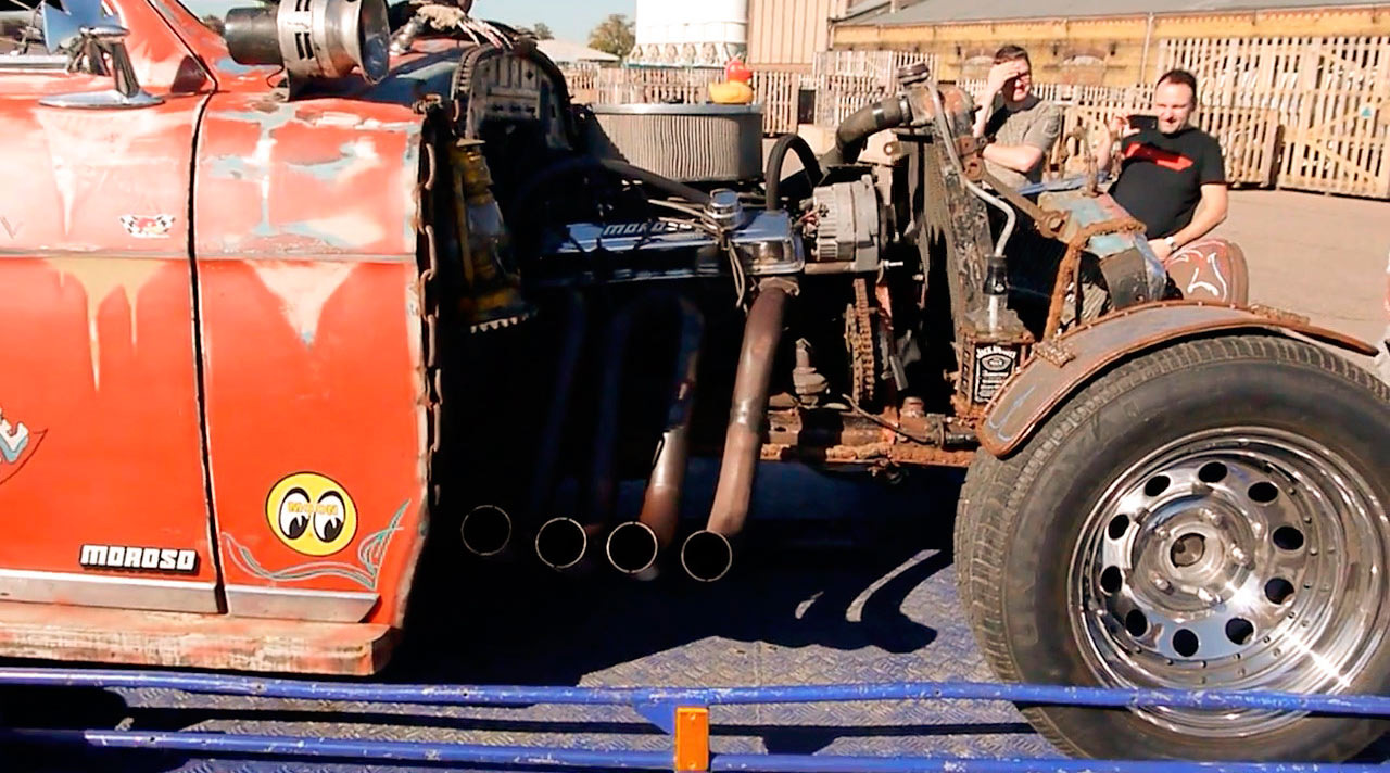 Рэт-род создан по всем канонам хотроддинга с могучим карбюраторным V8, трубами, выходящими прямо из него, и отсутствию капота и передних крыльев. При этом передние колеса закрыты небольшими щитками, а между ними установлена узнаваемая решетка радиатора от «Волги».