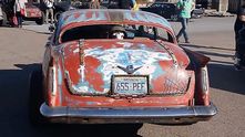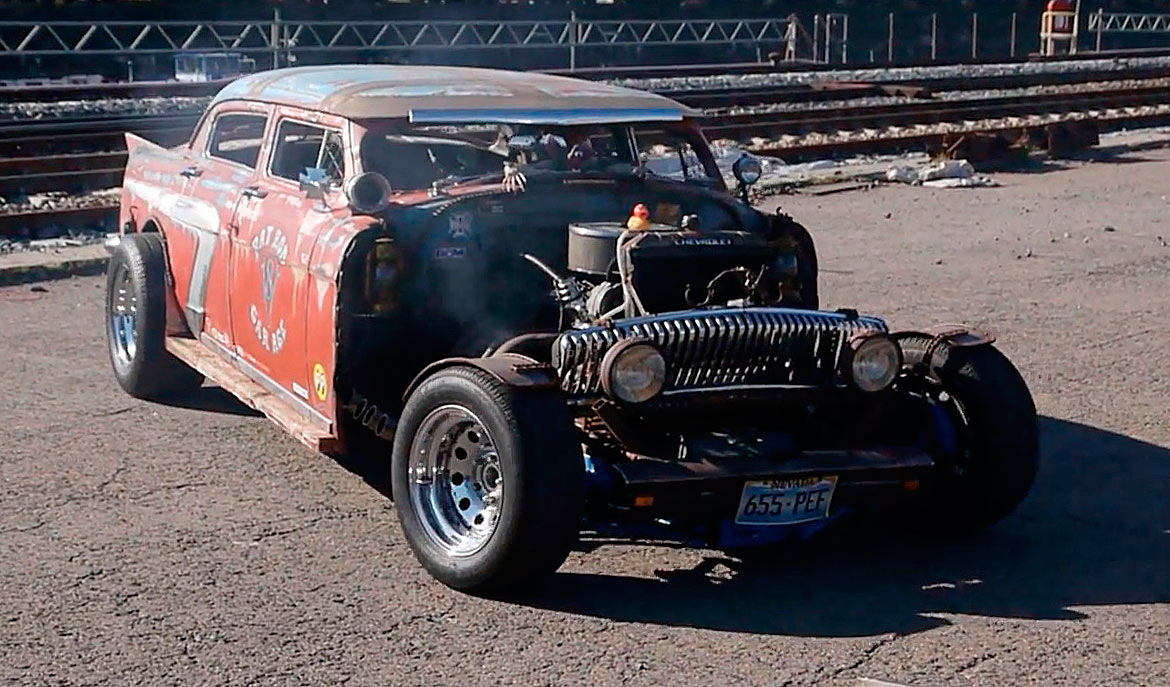 Кузову провели процедуру понижения крыши, а также переделали задние крылья, добавив стильные плавники. Когда все хирургические процедуры были готовы, кузов окрасили с нанесением необычных узоров. Стекол тут нет, да и не нужны они в рэт-родах.
