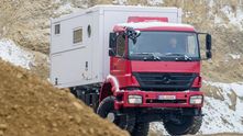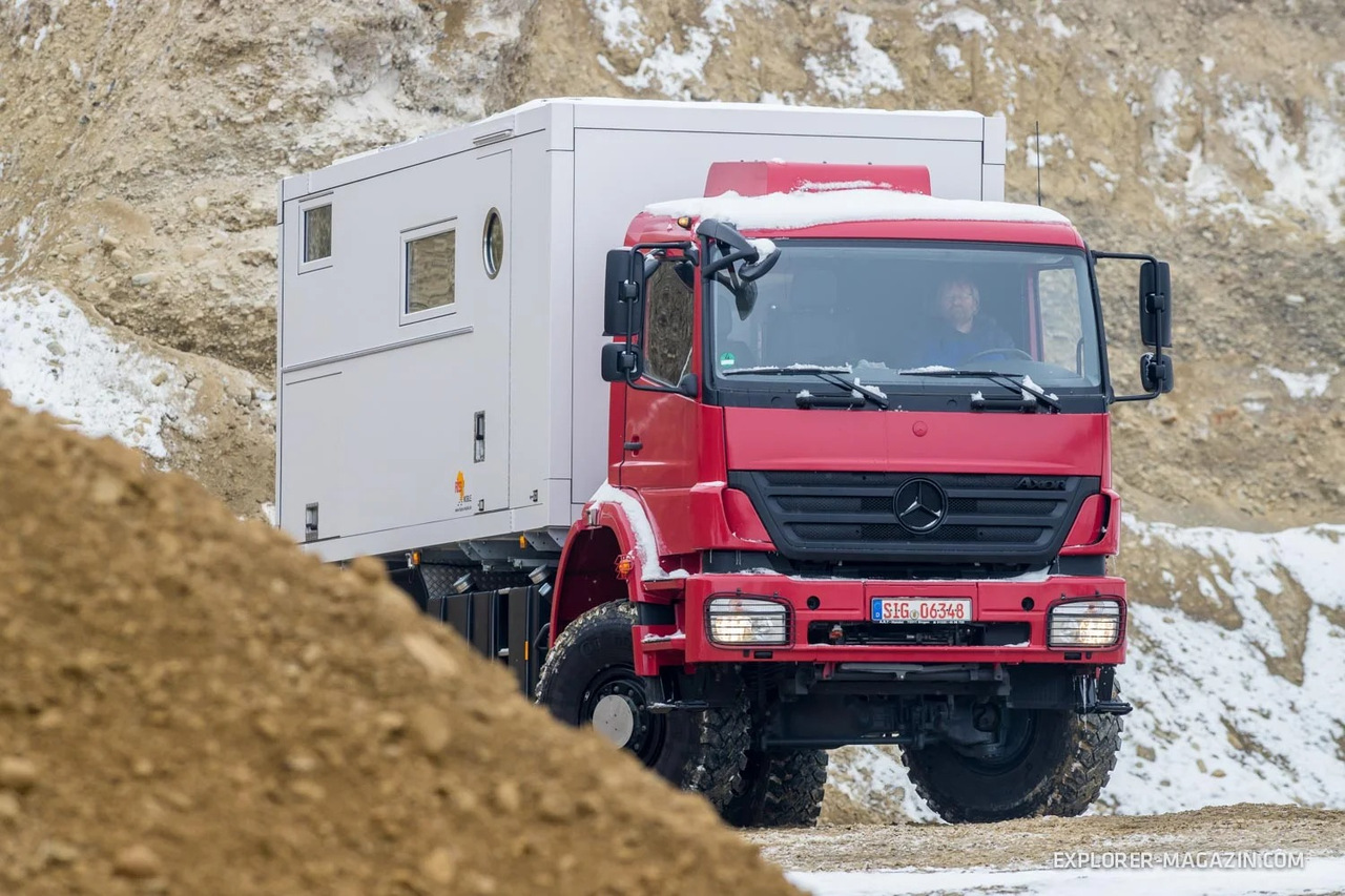 Когда речь заходит о полноприводном двухосном грузовом шасси европейского производства, то часто это будет бывший военный MAN. Но у Mercedes-Benz также есть такая модель в гамме Axor, на которой можно сделать очень крутой экспедиционный автомобиль.