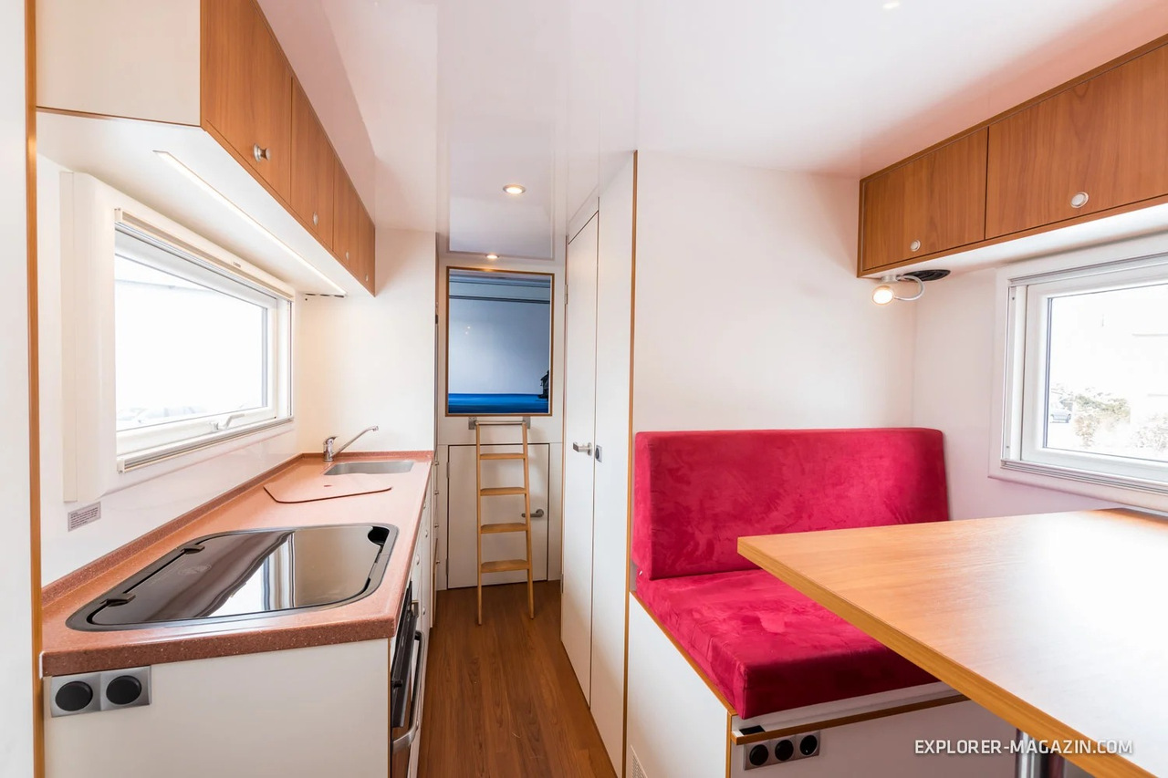 Его сделала немецкая компания Füss, установив жилой модуль вместо кузова. В нём есть всё необходимое для комфортабельного проживания 2-3 человек. А внедорожные способности шасси позволят проехать ему практически в любую точку земного шара.