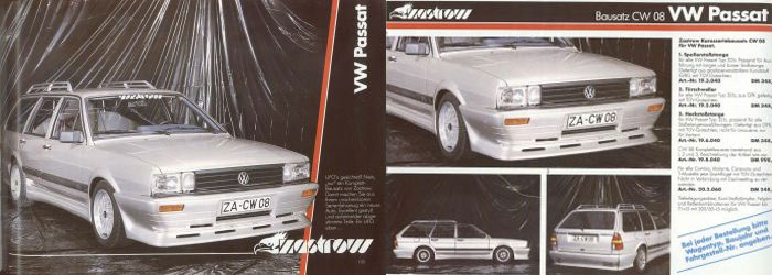 Чуть более стандартный и сдержанный вариант тюнинга предлагался для Volkswagen Passat, в том числе и для универсала, который вы видите на официальной брошюре тюнинг-ателье. Набор элементов стандартный: передний и задний бампер, а также накладки на пороги.