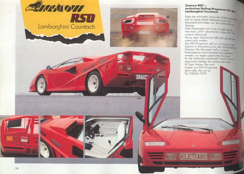 Заявленная производителем стоимость комплексного пластикового обвеса Zastrow RSO составляла 25 тысяч немецких марок (новый Countach в те годы стоил 250 тысяч марок), а его монтаж занимал 14 дней.