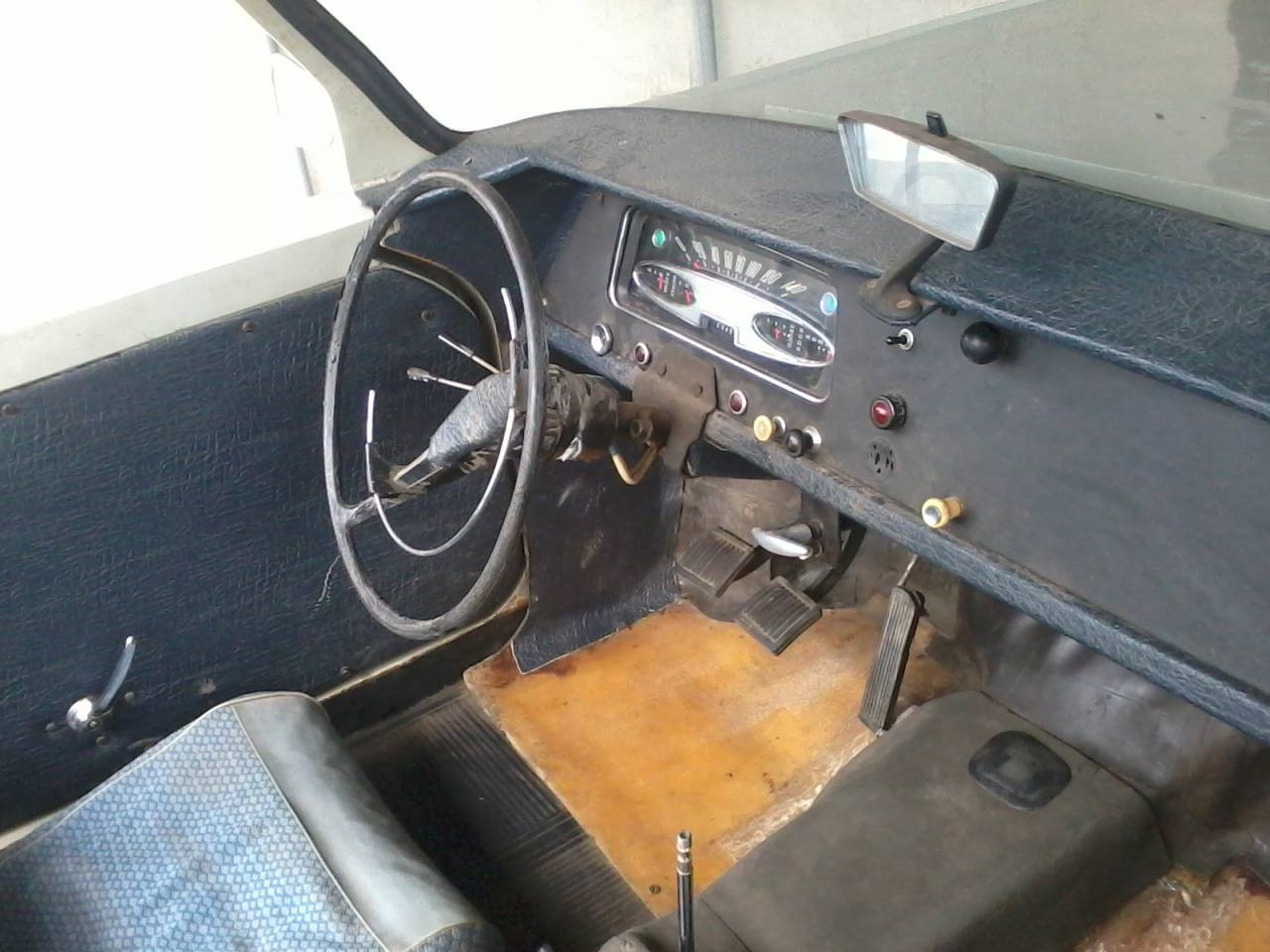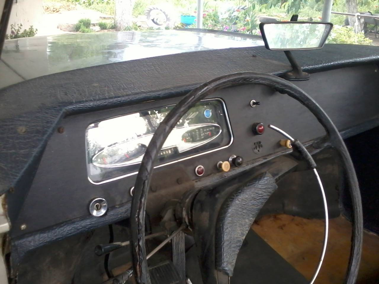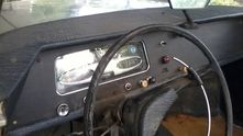 Рамка лобового стекла вместе со стеклом явно позаимствована от «Москвича». Крыши предусмотрено не было. Вероятно, её просто не успели сделать. Передняя панель самодельная, но «приборку» и рулевое колесо взяли от «Москвича».