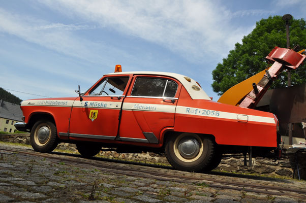 Об этой уникальной «Волге» известно совсем немного. Автомобиль помощи на дорогах, созданный на базе ГАЗ-21 «Волга», работал в немецком городке Майссен, недалеко от Дрездена.