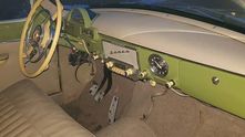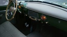 Интерьер сохранил свой аутентичный дизайн, но получил современную отделку: передняя панель и диваны обшиты натуральной кожей, а педали получили алюминиевые накладки. Тут стоит дорогая современная аудиосистема, которая маскируется под старинный радиоприёмник.