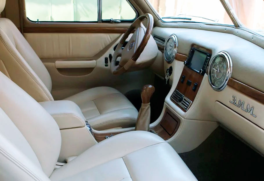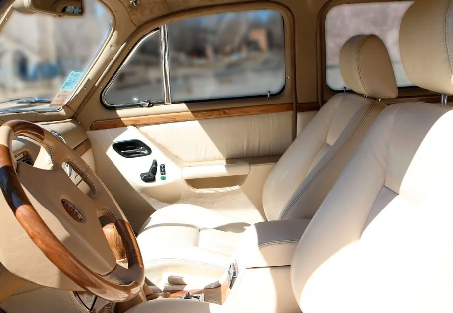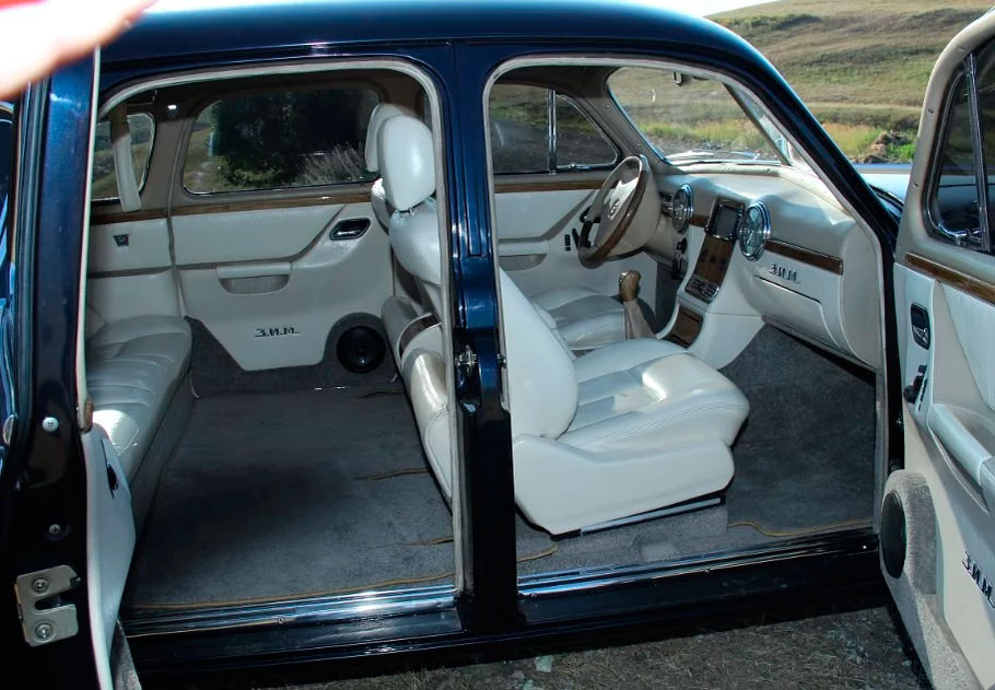 Сделана полная шумоизоляция, а стекла теперь опускаются с помощью электропривода. В оснащение теперь также входит центральный замок и электрорегулировка передних сидений.