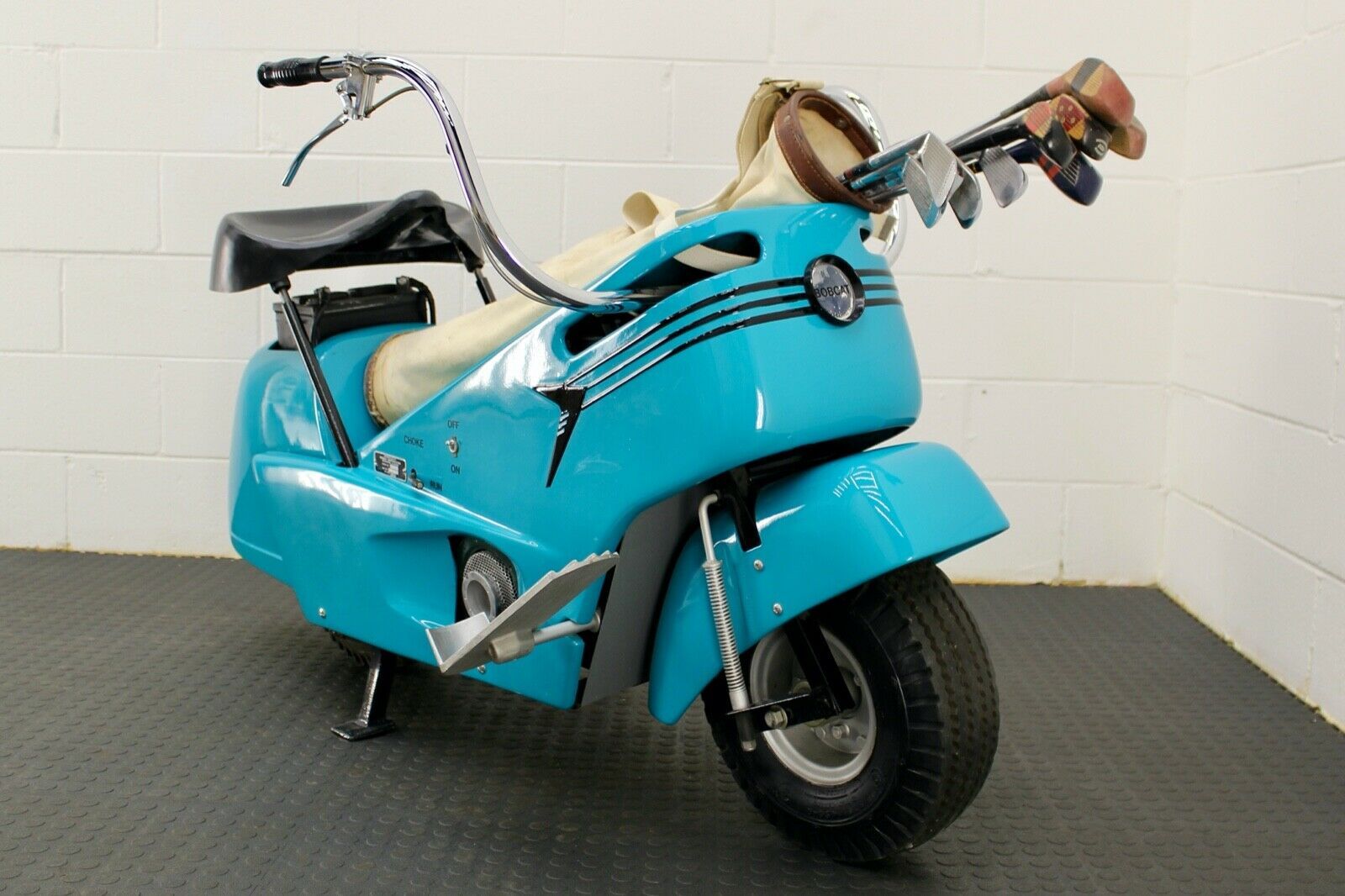 Этот маленький скутер Bobcat, предназначенный для гольф-полей, имеет довольно много интересных технологических достижений конца 1950-х годов, в том числе электростартер, автоматическое сцепление, пластиковый кузов, армированный стекловолокном (как у Chevrolet Corvette!), педальные ножной тормоз и автоматически выдвигающиеся подножки. Некоторые из этих решений придут в мир обычных мотоциклов и скутеров лишь спустя несколько лет и даже десятилетий.