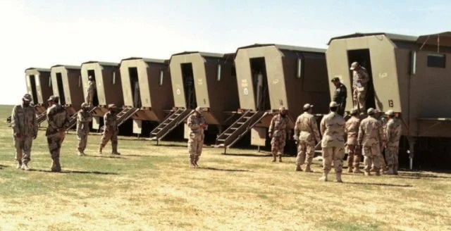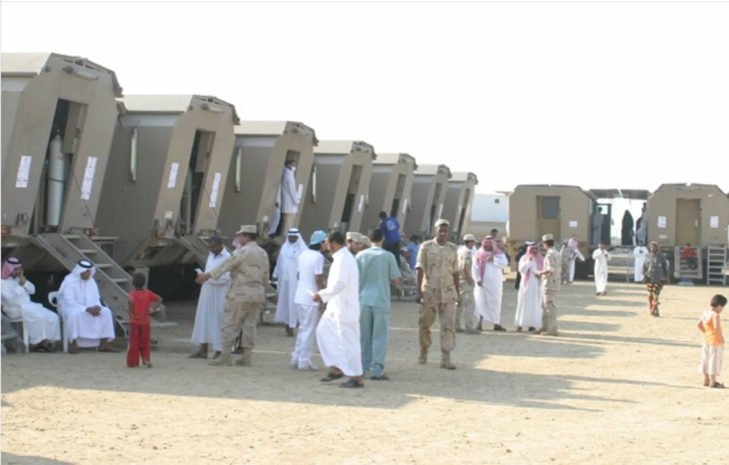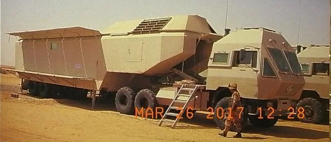 Полуприцепы спроектированы таким образом, чтобы их можно было объединять друг с другом, создавая тень, что очень важно в жарком климате Саудовской Аравии. Судя по фотографиям ниже, таких мобильных комплексов сделали немало. Скорее всего они задействованы в конфликте с проиранскими повстанцами Хюти в Йемене.