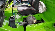 Судя по всему, проект еще не завершен: в салоне явно не хватает некоторых элементов. Но уже сейчас можно увидеть, что водительское место мало отличается от стандартных микроавтобусов. Разве что привод коробки передач теперь выполнен иначе.