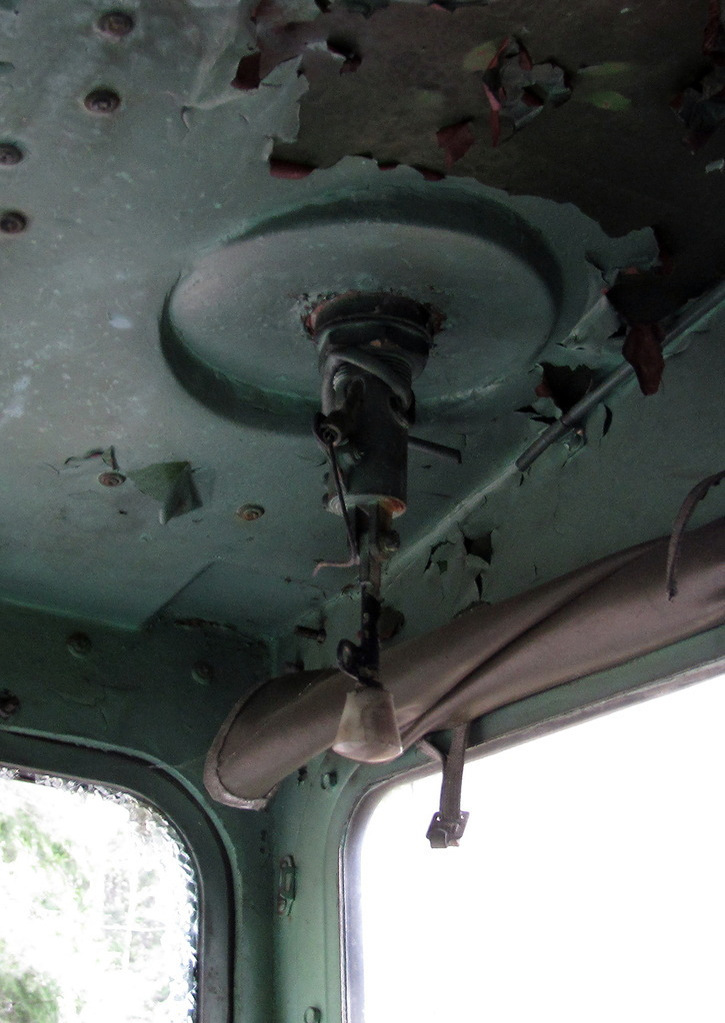 В крыше кабины (в правой её части) находится непонятный рычаг, похожий на рычаг переключения передач. Что он тут делает и чем управляет? Пишите в комментариях.