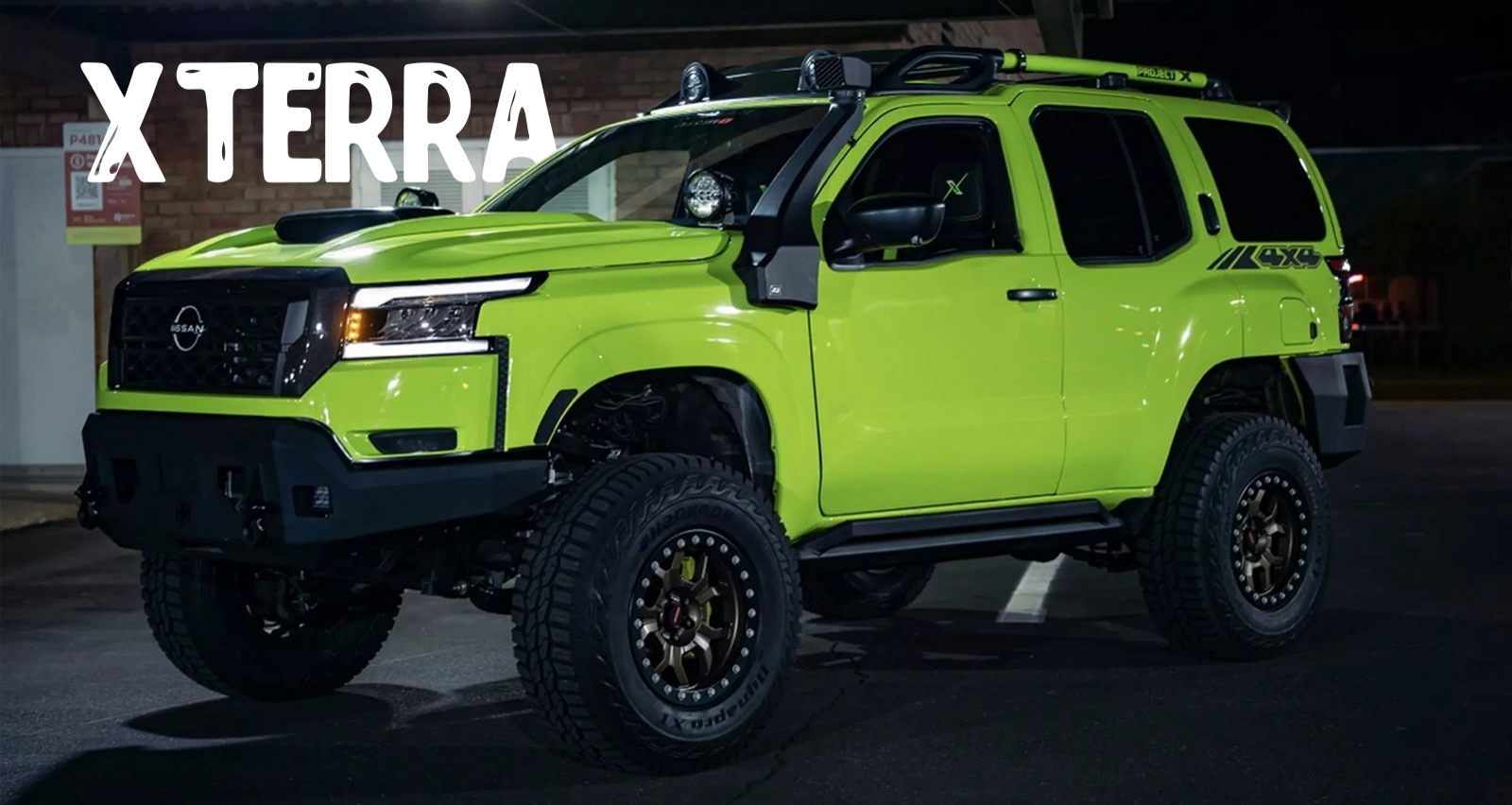 Проект под названием Project X создан Ником Шерром — давним фанатом Nissan и NISMO. Его цель — переосмыслить оригинальный Xterra с современной точки зрения, объединив мощь, технологии и дизайн в то, что он называет «любовным письмом к внедорожному наследию Nissan».