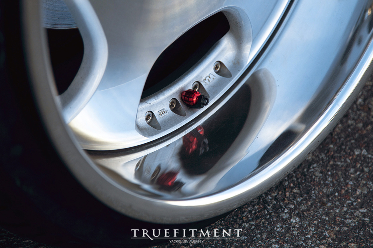 Первым в списке желаний стало приобретение подходящих дисков. Выбор пал на Wald Duchatelet II, найденные на аукционе в Японии. Чтобы диски гармонировали с кузовом, пришлось также докупить новые полки, увеличившие параметры до 10.5 дюймов спереди и 12.5 сзади.