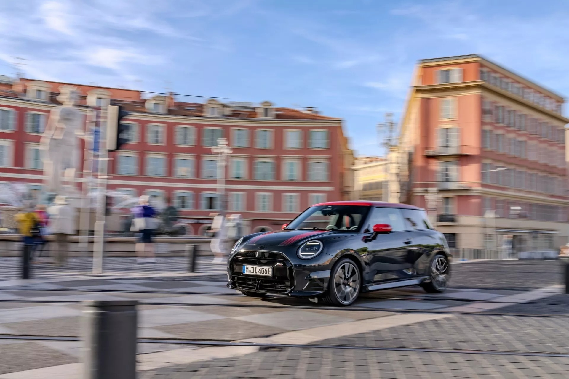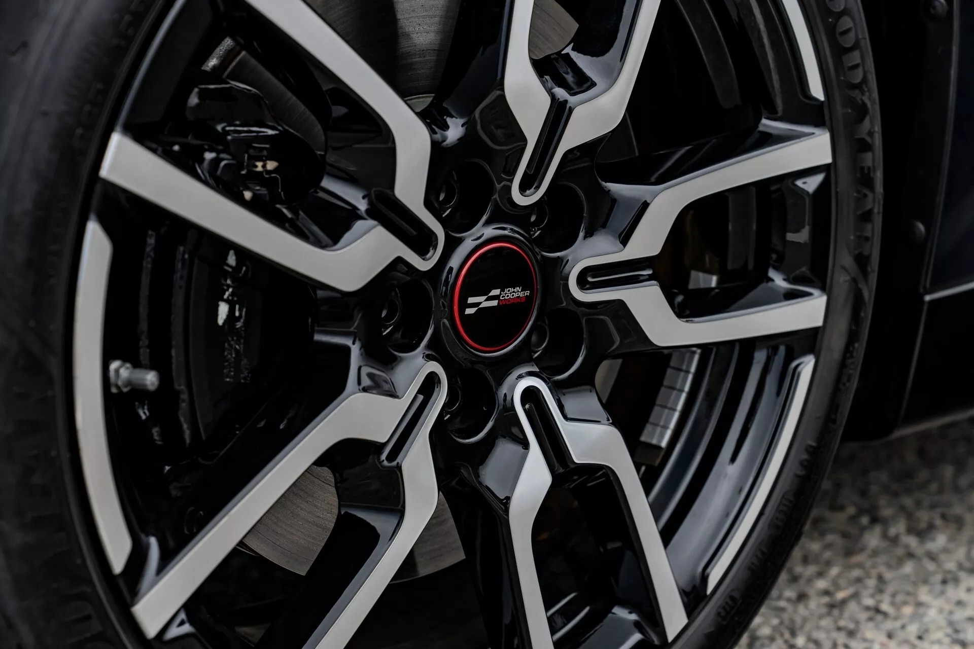 Особенностью версии Mini Cooper SE JCW Trim являются оригинальные 18-дюймовые колесные диски, красные шильдики JCW, красные зеркала, а также спойлеры спереди и сзади.