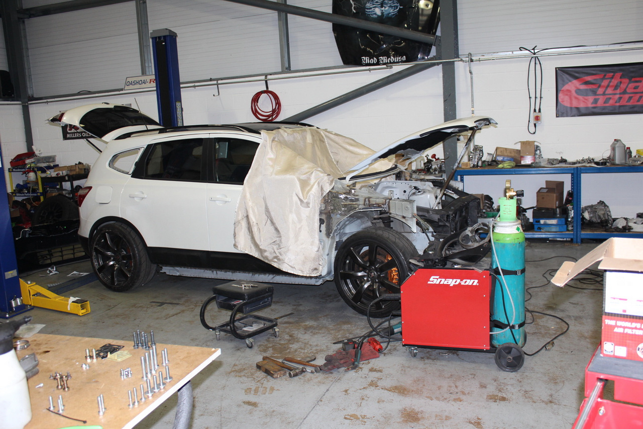 И даже несмотря на такой необычный, если не сказать странный, способ показать миру доработанную модель, у автомобиля есть, чем привлечь внимание. Это два топливных насоса от Bugatti Veyron, два турбонагнетателя Garrett GT35 Series, впускной коллектор BoostLogic, 102мм выхлопная система от SVM, высокоточная тормозная система от Dixcel, а также реулируемая подвеска KW. Снаружи SVM тоже постарались сделать кроссовер поярче, а в салоне заменили сидения и приборную панель на оригинальные из GT-R.
