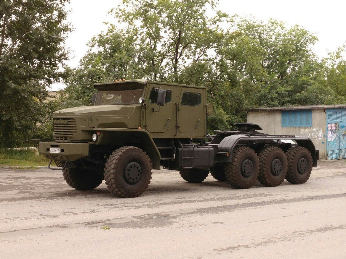 В Сети появились фотографии нового военного седельного тягача Урал-6308 с колесной формулой 8х8, который будет возить тяжелую бронетехнику. Капотный тягач с бронированной кабиной относится к новейшему семейству "Торнадо-У". Он призван заменить трехосные грузовики КамАЗ с 400-сильными двигателями.