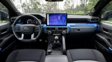 Дизайн, вдохновленный Tundra, продолжается в салоне пикапа. Перед водителем находится совершенно новое рулевое колесо и современная панель приборов с 7-дюймовым дисплеем. Это заметное улучшение по сравнению с предыдущим 4,2-дюймовым мультиинформационным дисплеем. В более дорогих комплектациях покупатели смогут получить 12,3-дюймовую цифровую панель приборов.