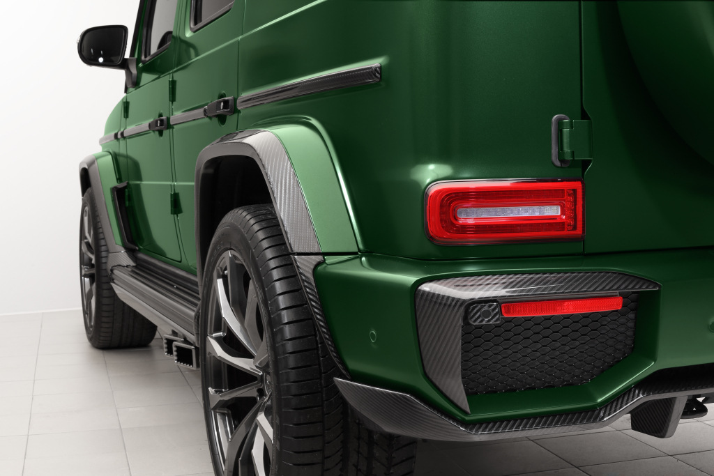 Также для внедорожника подготовили кожух запасного колеса, выполненный полностью из карбона, и фирменную линейку 22- и 23-дюймовых колесных дисков.