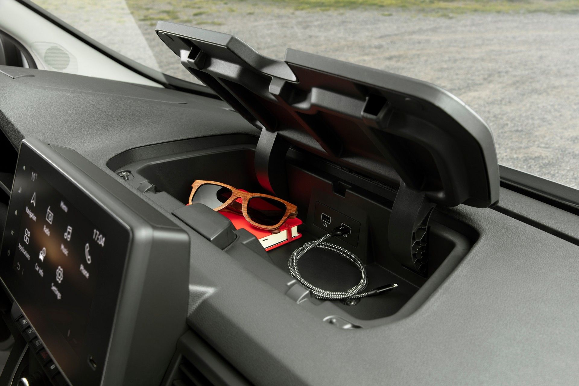 Обновленный NV300 Kombi стал вместительнее: объем внутренних отсеков для хранения вещей увеличился на 88 литров. Большая часть этого объема (54 литра) относится к отсеку, расположенному под пассажирским сиденьем.