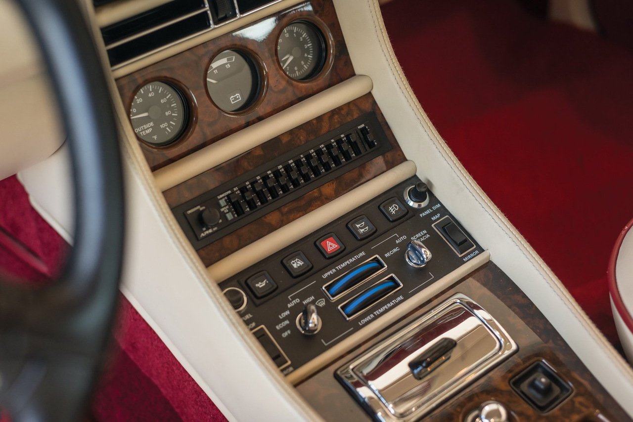 Этот экземпляр — один из двух выпущенных с левым рулем. Его кузов сделан из алюминия и окрашен в ярко-красный цвет Tudor Red с интерьером цвета магнолии.