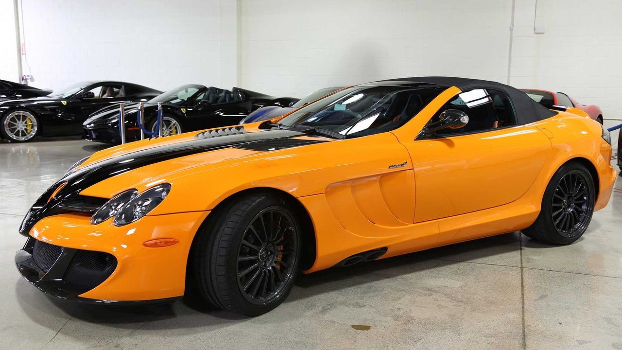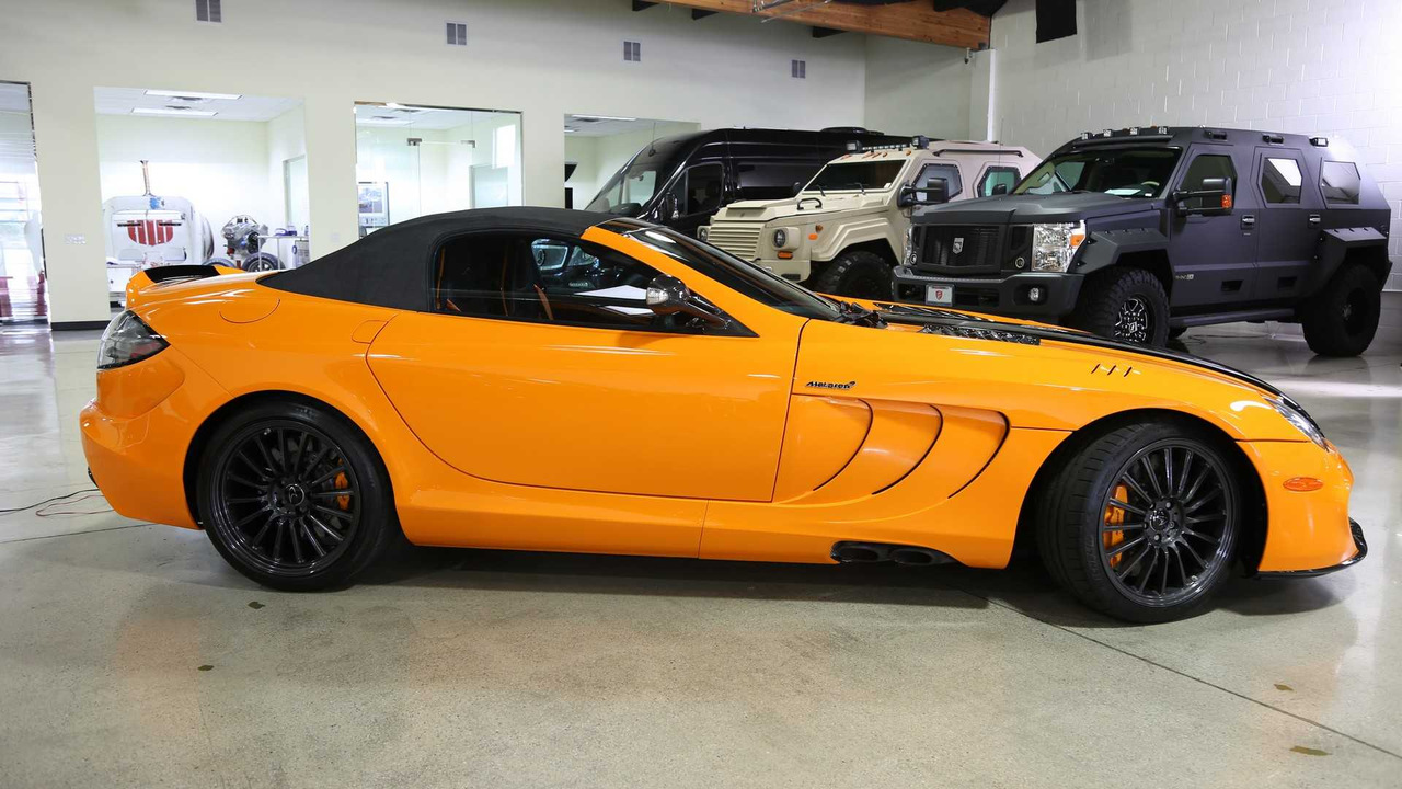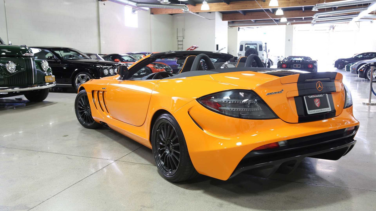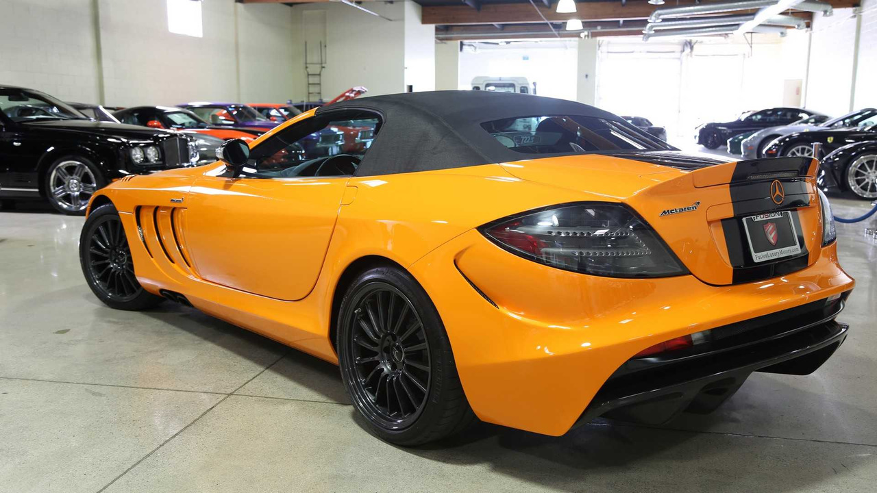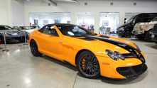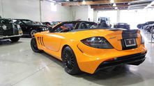 Этот экземпляр Mercedes-Benz SLR 722 S Roadster McLaren Edition, недавно выставленный на продажу в США, вероятно, наиболее красивый из шести. Первое, что бросается в глаза — это яркая фирменная двухтонная окраска кузова, которая называется McLaren Orange. Она представляет собой практически идеальное сочетание оранжевой основы с черными элементами.