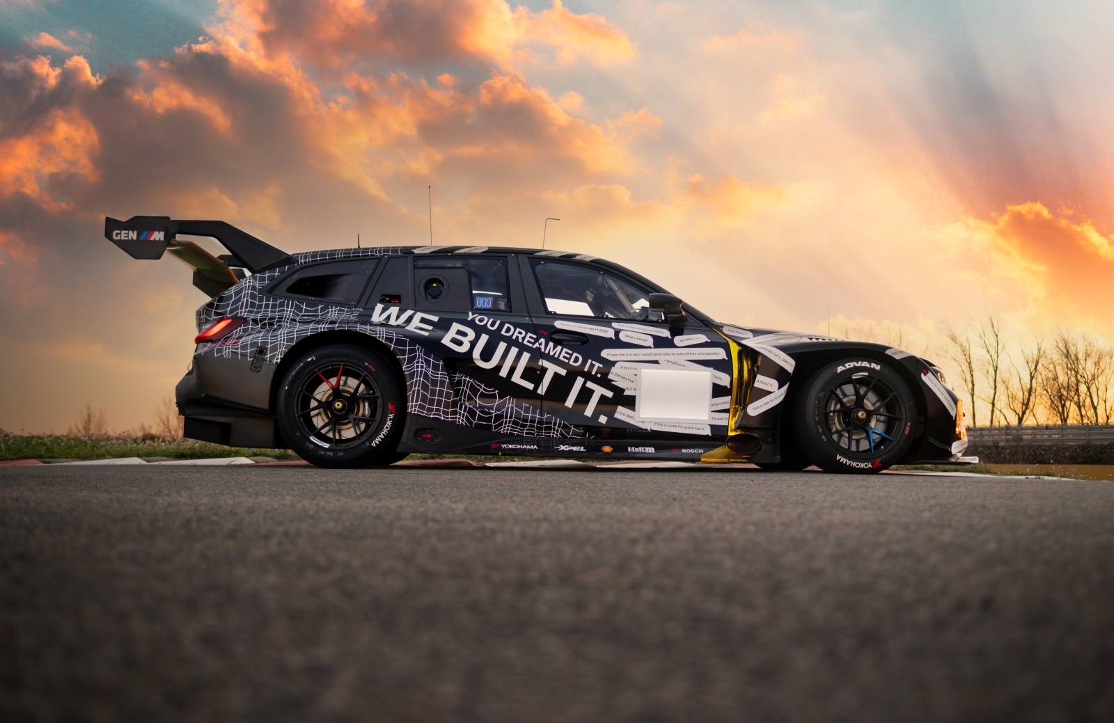 Как и ожидалось, по сути это BMW M4 GT3 EVO, «завёрнутый» в кузов BMW M3 Touring. Универсал получился на 200 мм длиннее и на 32 мм выше купе. Увеличенные габариты создали ряд аэродинамических сложностей, но инженеры решили их с помощью нового крепления антикрыла. Также были изменены форма и расположение самого антикрыла.