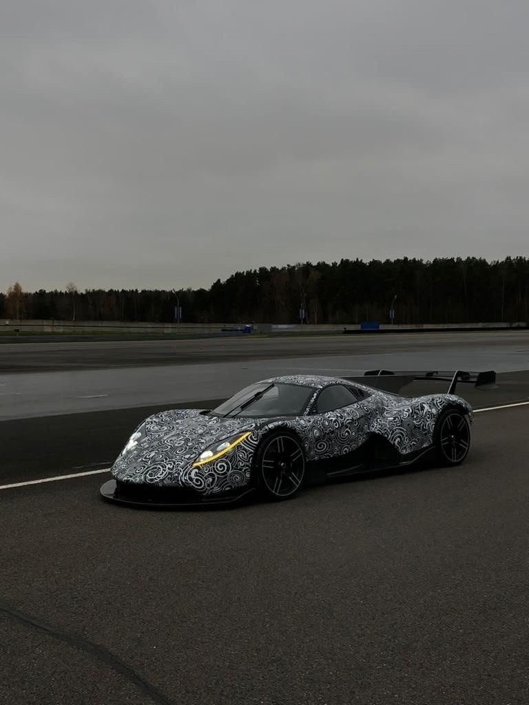Появились первые фотографии нового российского суперкара. На снимках можно увидеть купе с агрессивным обвесом и необычными дверями.