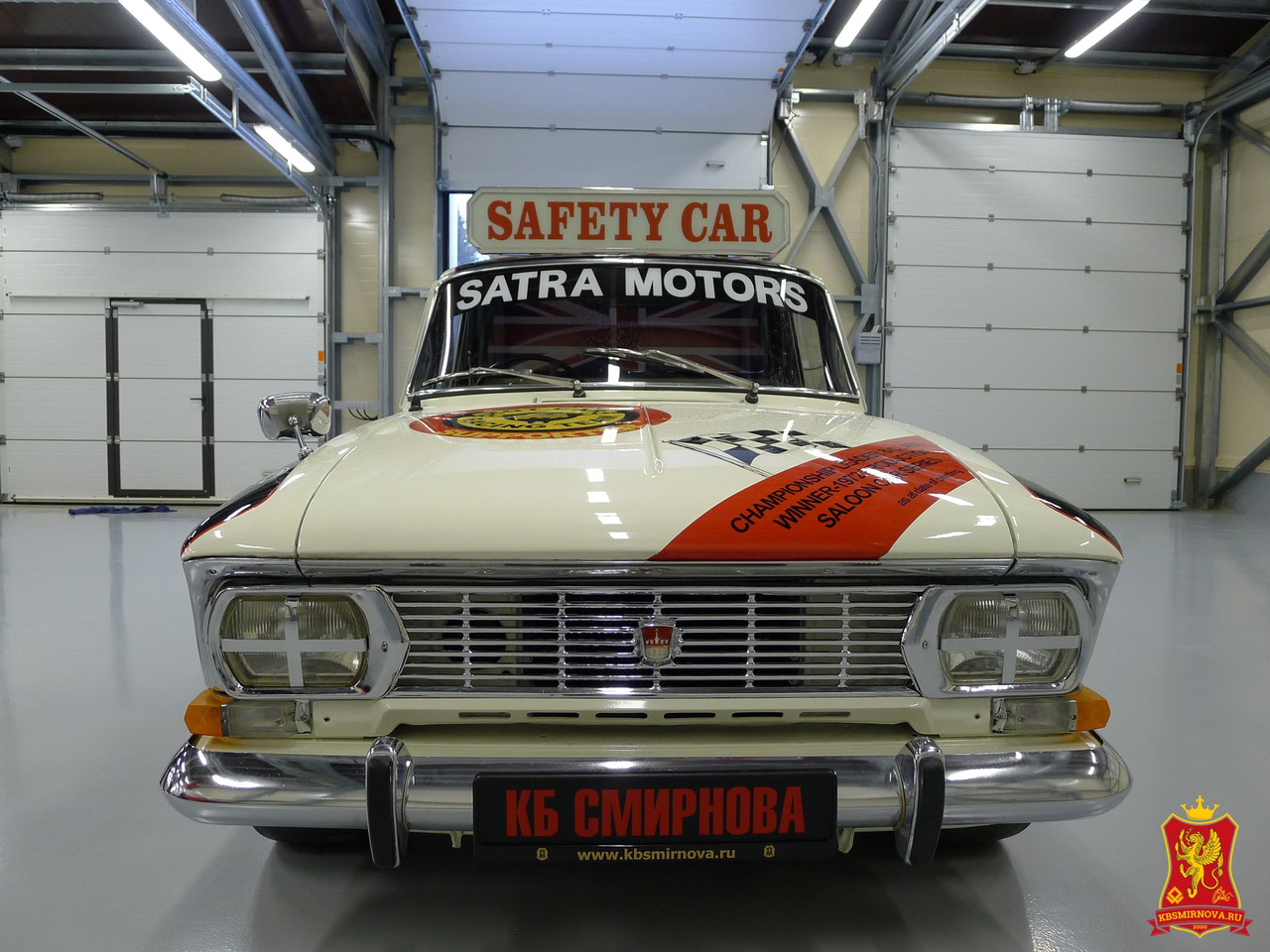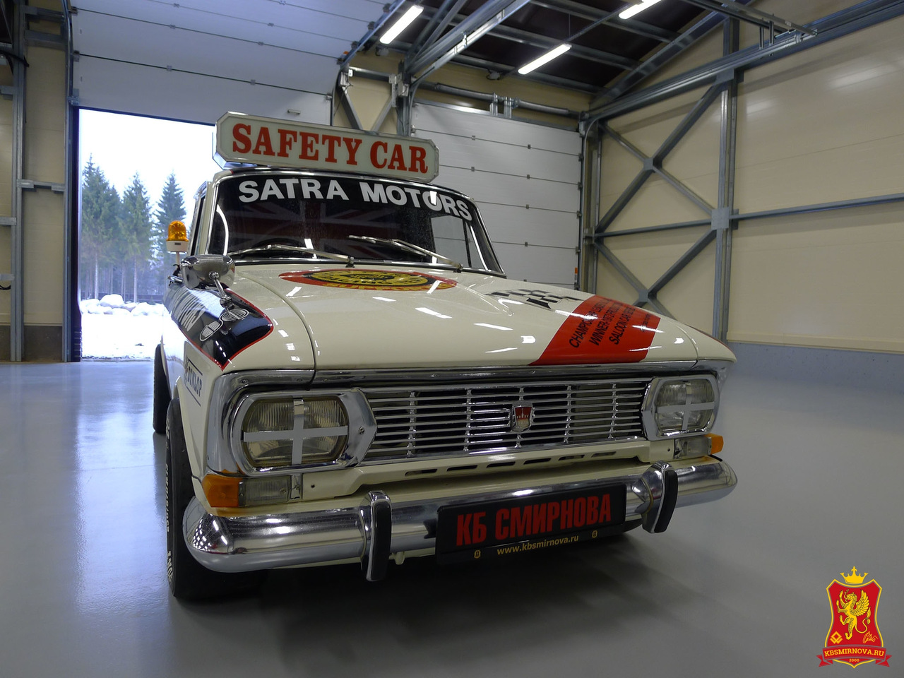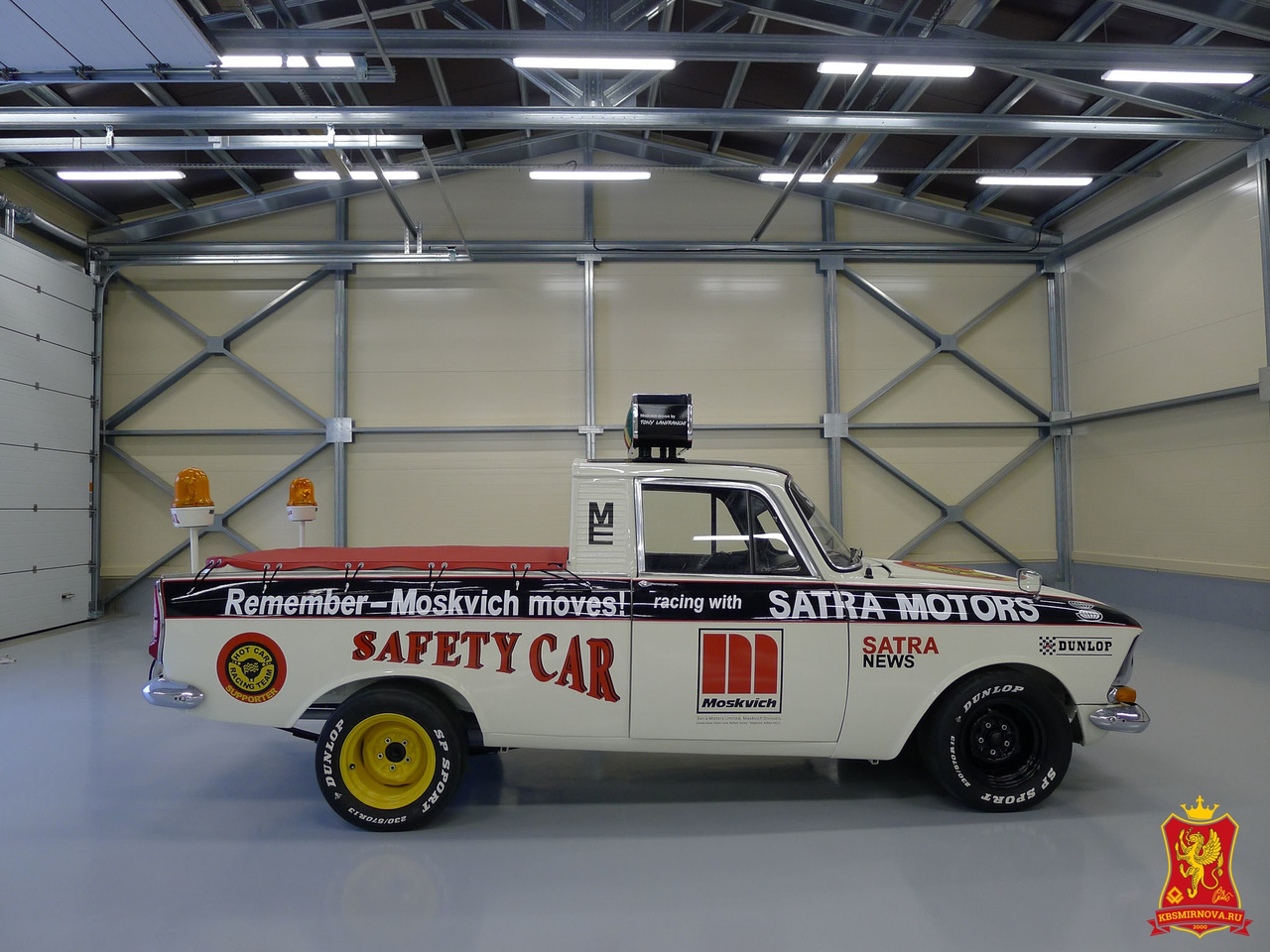 В честь недолгой, но успешной спортивной карьеры гоночной команды импортера «Satra Motors Limited», КБ Смирнова решило нанести на пикап Москвич-434П боевую гоночную раскраску. Информационное табло с надписью «Safety Car» нашли в Бельгии. Отреставрировав, его закрепили на крыше пикапа. В задней части за иллюминацию отвечают два проблесковых маячка оранжевого цвета.