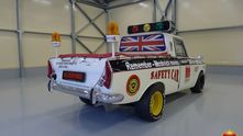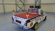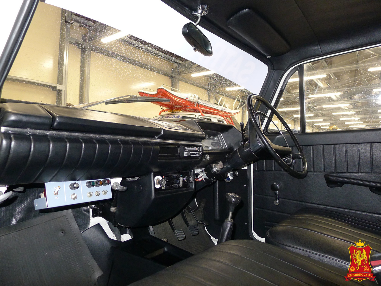 Сейфети кары должны обладать характеристиками, не хуже, чем у гоночных версий. Именно поэтому пикап получил разноширокие гоночные слики Dunlop и спортивную подвеску с уменьшенным дорожным просветом. Открытый кузов покрыли ярко-красным тентом. А еще полностью перешили салон.