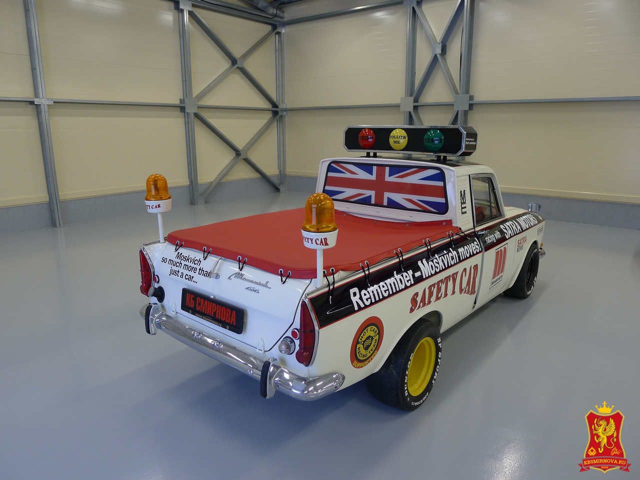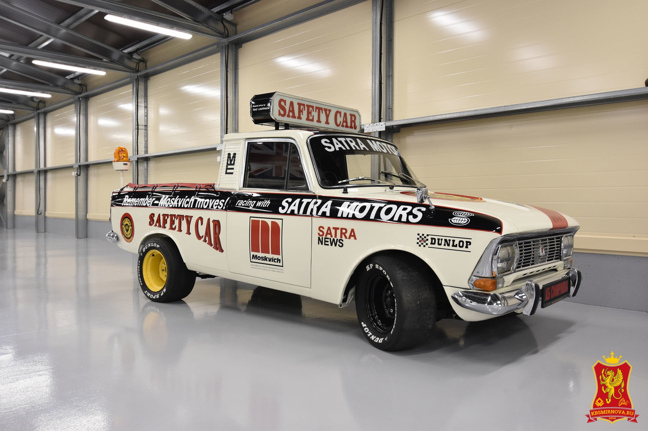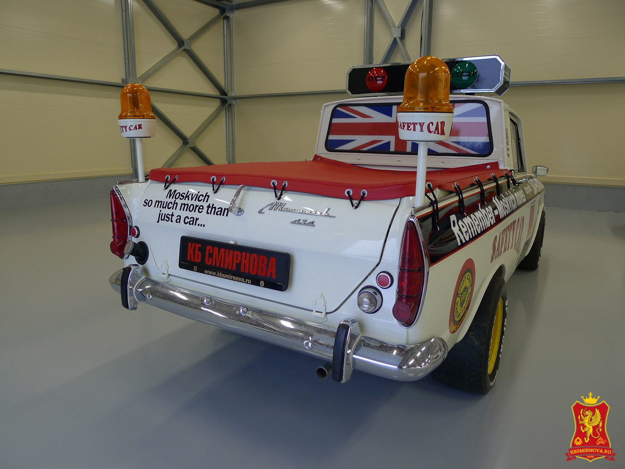 Москвич-434П с кузовом пикап попал на доработку в КБ Смирнова, где с ним решили сделать нечто довольно любопытное. Так в данном проекте неожиданно органично пересеклись: редчайший пикап-автомобиль «Safety Car» на английских кольцевых автогонках, носящий имя известного английского автогонщика, и история известной компании-экспортера, которая являлась крупнейшим дилером по продажам отечественных машин на берегах туманного Альбиона.