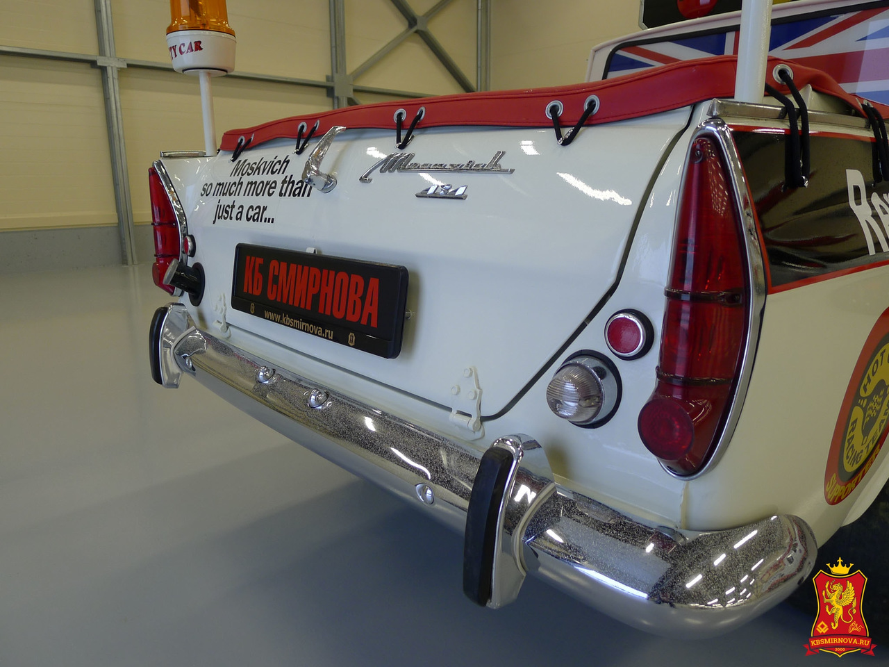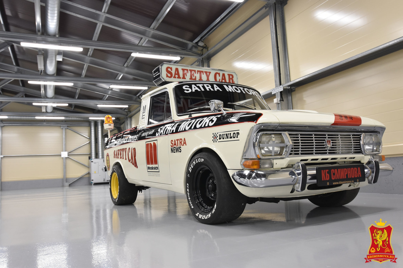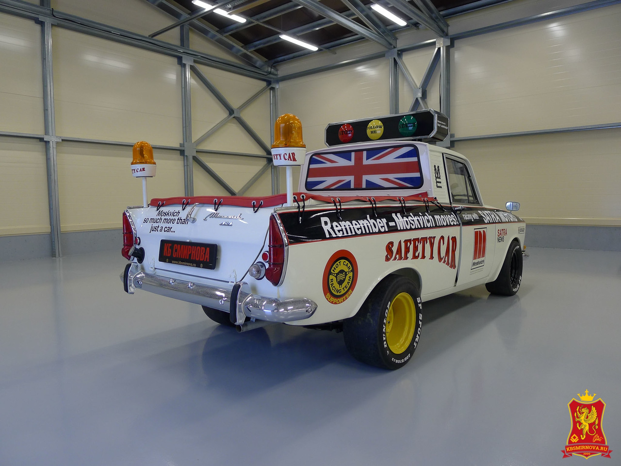Москвич-434П с кузовом пикап попал на доработку в КБ Смирнова, где с ним решили сделать нечто довольно любопытное. Так в данном проекте неожиданно органично пересеклись: редчайший пикап-автомобиль «Safety Car» на английских кольцевых автогонках, носящий имя известного английского автогонщика, и история известной компании-экспортера, которая являлась крупнейшим дилером по продажам отечественных машин на берегах туманного Альбиона.