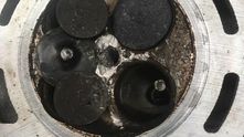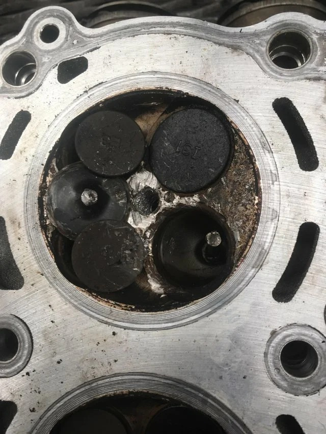 Запомните, так выглядит начало плохого дня. Две клапанные крышки сорвало со штоков. Причины не понятны, но можно с уверенностью сказать, что после отрыва они натворили дел в камере сгорания, скорее всего, уничтожив поршень.
