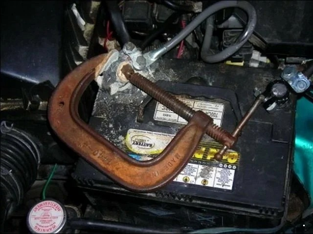 Из-за окисления аккумуляторные клеммы постоянно разъедает, в результате чего нарушается контакт. Чего только не делают автовладельцы, чтобы отремонтировать эту неисправность в домашних условиях. Лишь бы не тратить деньги на поездку в автосервис.
