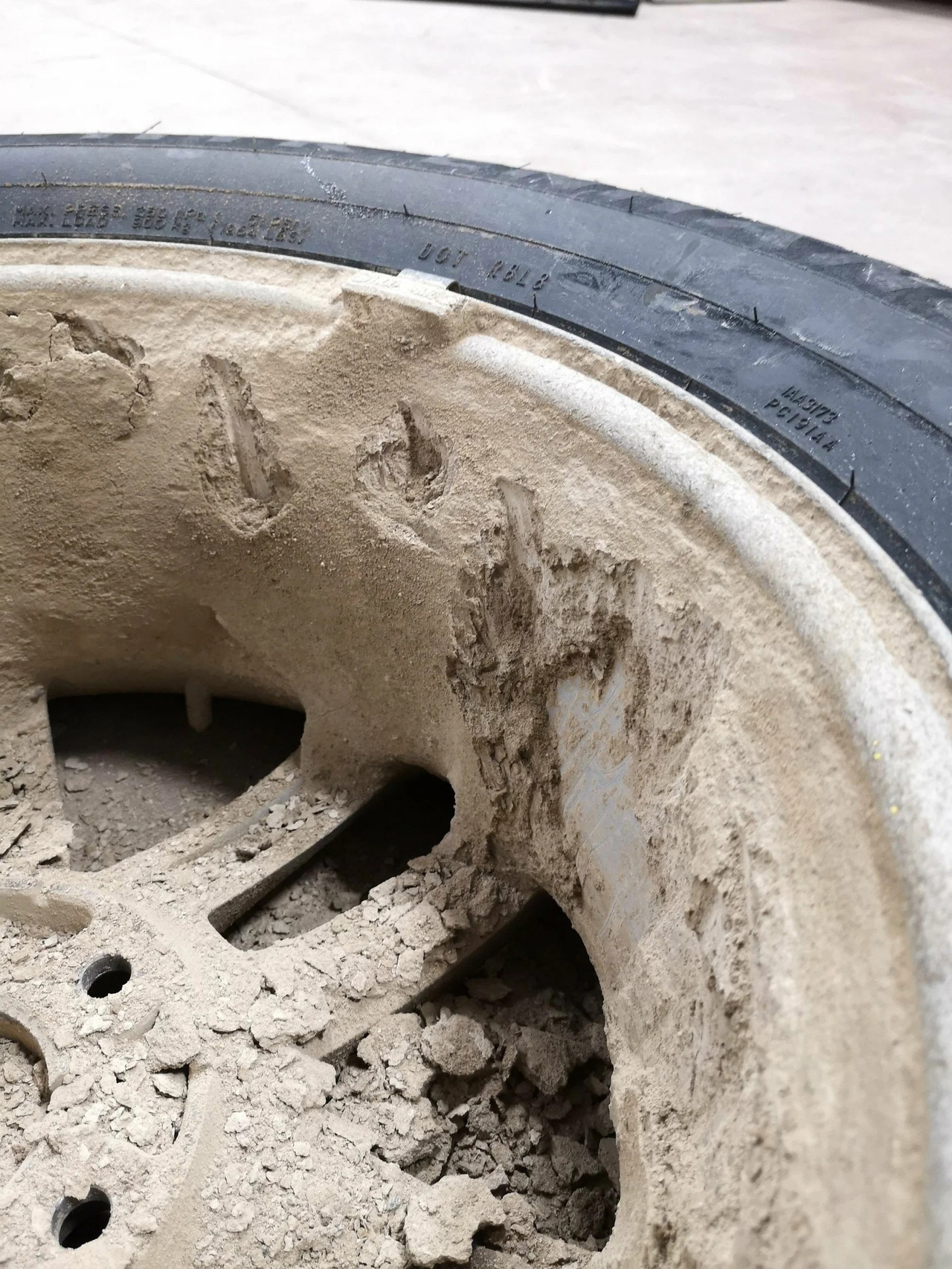 Вот к чему может привести постоянная езда по грунтовым дорогам. На колеса с внутренней стороны набивается толстенный слой засохшей спрессованной грязи, которая вызывает ужасные вибрации при движении на большой скорости. К счастью, исправить это не так уж и сложно.