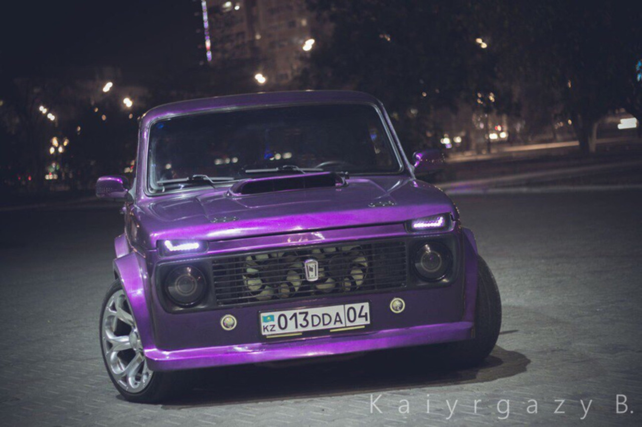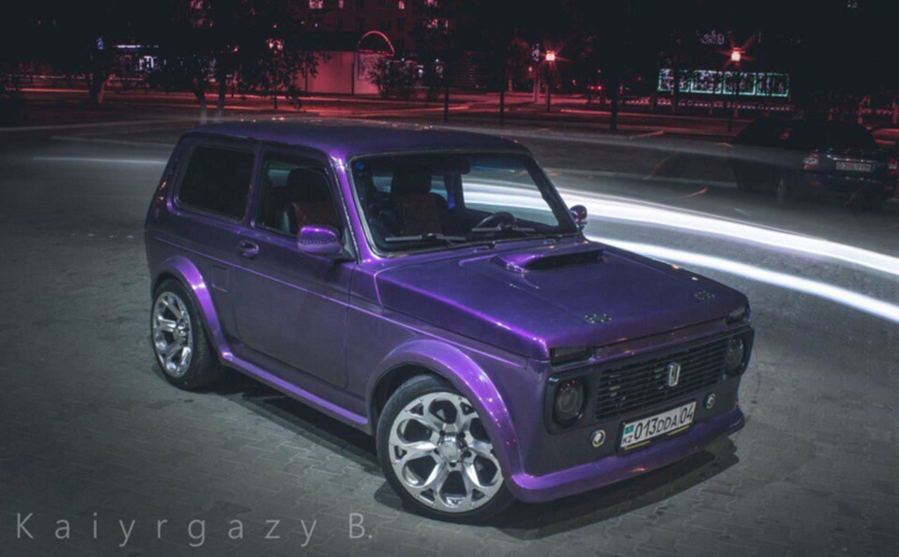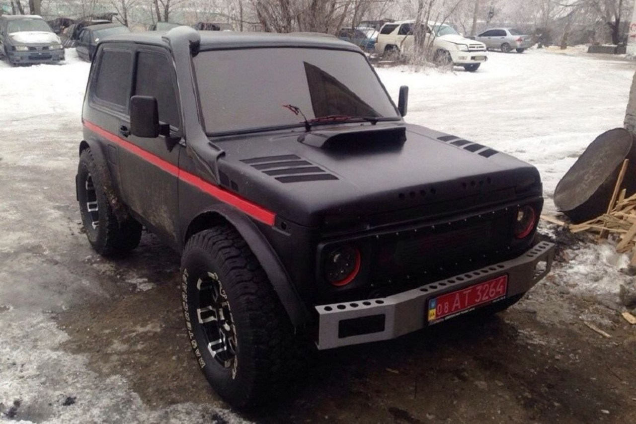 Вот еще одна интересная Нива. 16-клапанный вазовский двигатель был форсирован до 450 л.с. Также здесь пневмоподвеска с регулировкой положения кузова.