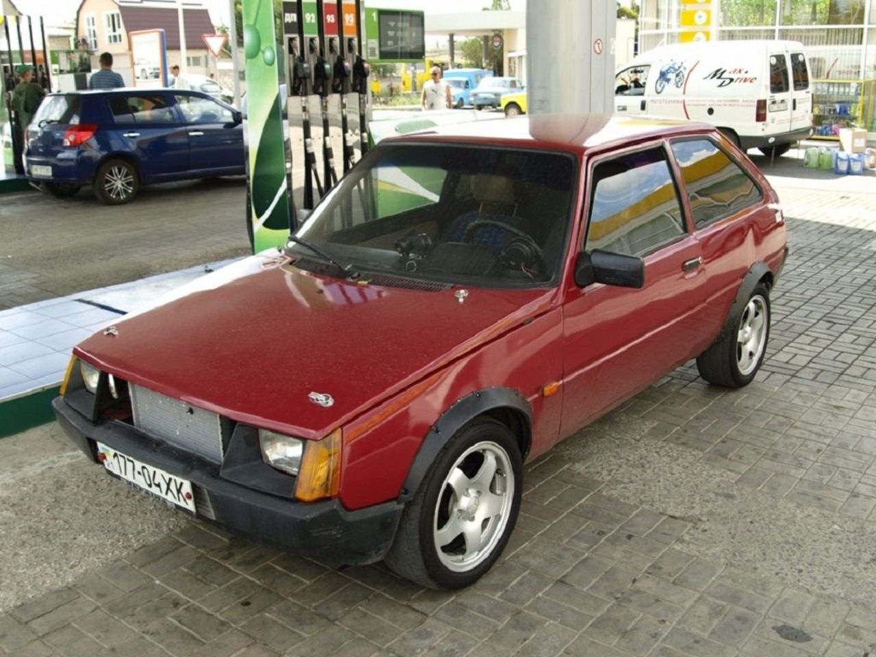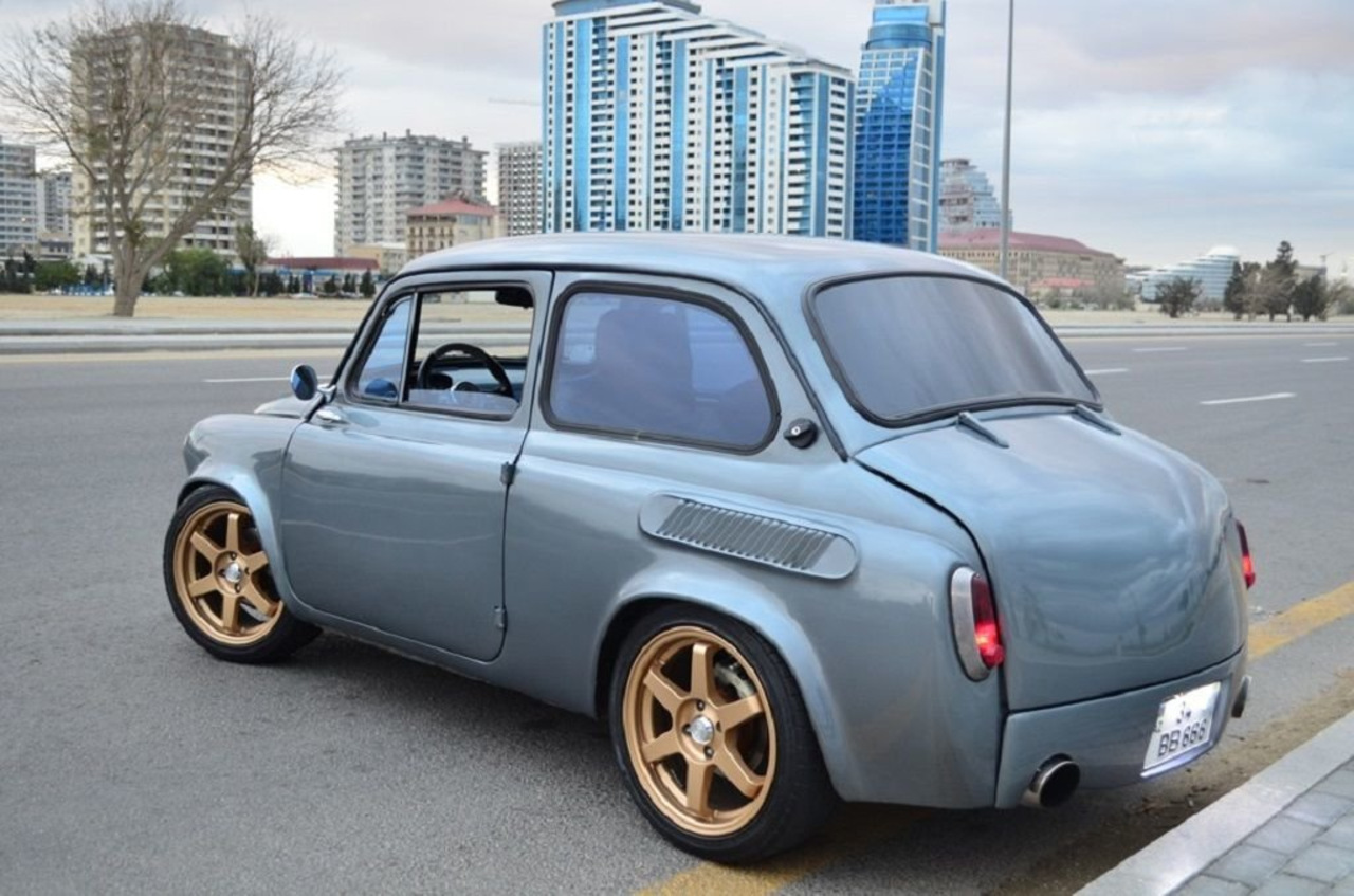 Строят ЗАЗики и для ежедневной эксплуатации. Так как автор проекта решил кардинально заняться переделкой, было принято установить новый мотор. Для этого у официального дилера ВАЗ был куплен 1,7-литровый бензиновый двигатель мощностью 73 л.с. от Нивы (блок 213). Стартер, генератор, ГБЦ и карбюратор достались от первого опытного мотора ВАЗ 2103. Радиатор от Нивы новый, КПП от ЗАЗ 968. Владелец установил суппорта от ВАЗ 2106 и тормоза от ВАЗ 2108. Задняя подвеска от ЗАЗ968, передняя подвеска доработана, занижена, тяги и прочее заменены на прочие марки. Для улучшения управляемости установлен стабилизатор поперечной устойчивости от ВАЗ. Как видите и над экстерьером было проделано немало работ.