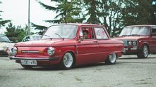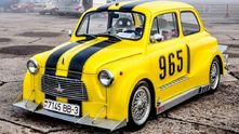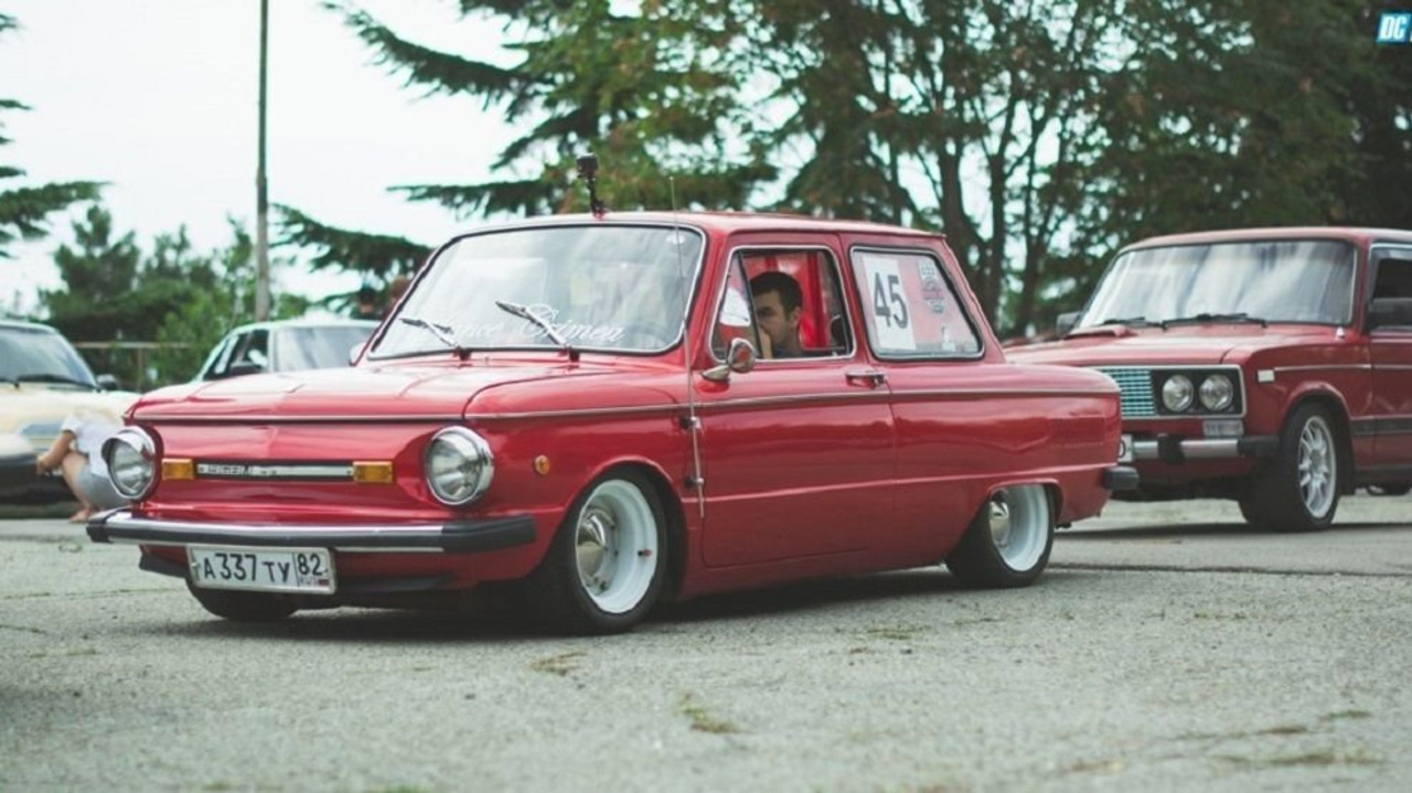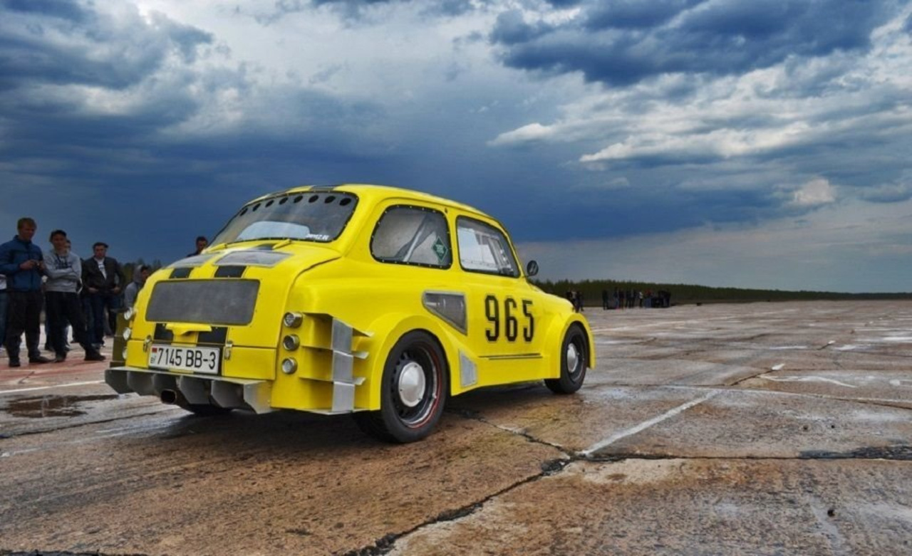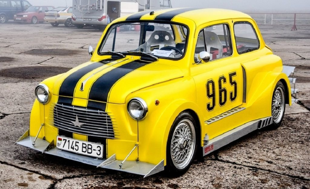 ЗАЗ 965 – легенда советского автомобилестроения. «Горбатый», «мыльница», «запор»,– как только не называли в народе этот маленький юркий милый автомобильчик. Одним он кажется нелепым и смешным, у других же остается самой любимой машиной. Сегодня встретить в идеальном состоянии такой автомобиль очень сложно, но интересные экземпляры все же остались. Конечно подбор тюнинг-агрегатов здесь не определяет большого выбора, и владельцем здесь никак не обойтись без нестандартных решений и технических фантазий. Вот например, взгляните на этого желтого малыша. Доработанный двигатель ВАЗ-21083 с Solex, коробка от 2141 с заваренным дифференциалом, тормоза ВАЗ-2112, «восьмерочные» поворотные кулаки.
