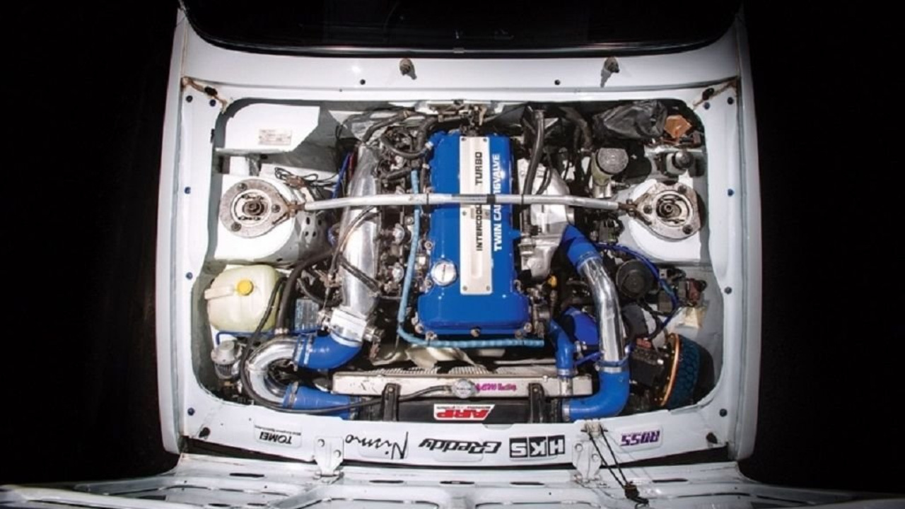 Когда этот автомобиль сошел с конвейера, он даже и думать не мог, что станет настолько мощным. Под капотом у него установлен двигатель Nissan SR20DET и турбонаддув Garrett GT2871R.Кроме того, двигатель был усовершенствован путём добавления распредвалов Tomei и инжекторами Nismo 740. Теперь он выдает 394 л.с при давлении в 1.4 Бар. Пятиступенчатая коробка передачи и задняя подвеска были взяты от Nissan S14, передняя подвеска, тормозная и рулевая системы – от Nissan S13.Благодаря увеличению мощности и низкому весу, автомобиль разгоняется до сотни за 4.6 секунды.