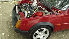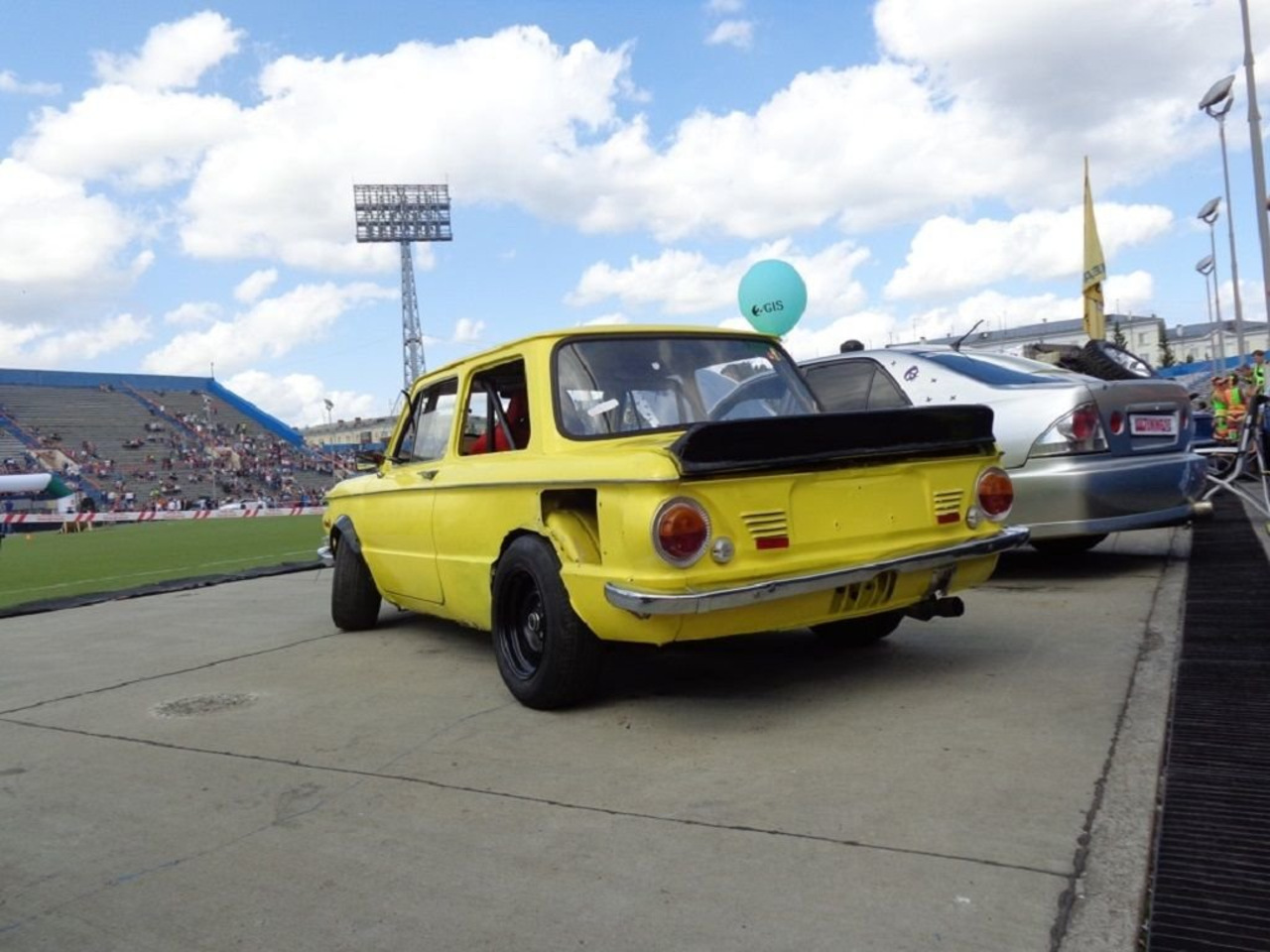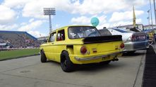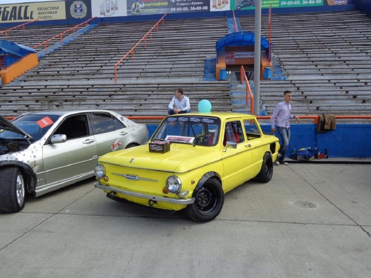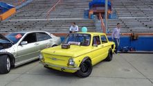 А вот еще один желтый ЗАЗ для дрэга. Он прокачан с помощью фольксвагеновского VR6, наддутого и с закисью азота.