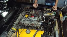 Каждый при силовом тюнинге отталкивается от своих представлений и руководствуется собственными возможностями. Под капотом желтого Москвича 412 - родной 1,7-литровый двигатель, форсунки от Волги, блок управления «Январь», впускной коллектор от Ford Sierra, корбка от ВАЗ-2106.