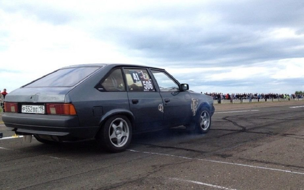 В «Москвич»-2141, из-за продольного расположения двигателя и длинного моторного отсека, устанавливают не только «четверки» вроде SR20. Попадаются экземпляры с моторами серии RB, JZ, а также с совсем не привычными силовыми агрегатами. Данный Москвич, например, прошел не один этап подготовки. Но сейчас под его широким капотом скрывается 3,2-литровый хондовский V6 J25A наддувом. Система полного привода и механическая коробка передач были позаимствованы от Субару. Тормоза и подвеска также подверглись глобальным изменениям.