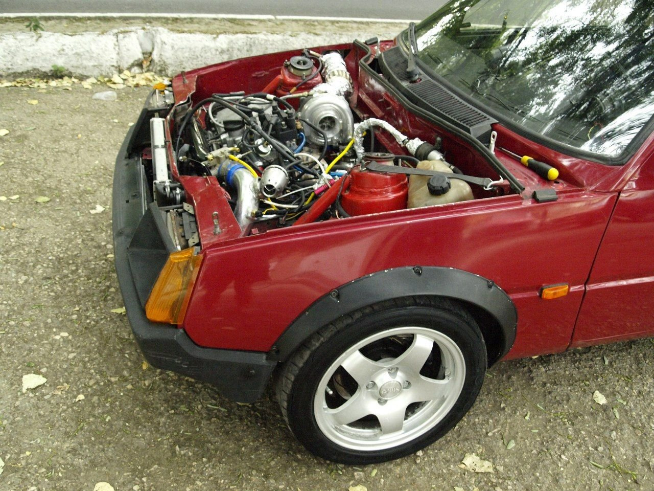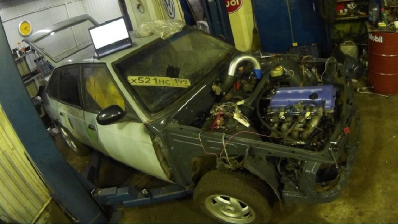 Вот эта Таврия была подготовлена для дрэга. Двигатель здесь опять же от ВАЗ-21083, который за счет наддува теперь выдает 350 лошадок.