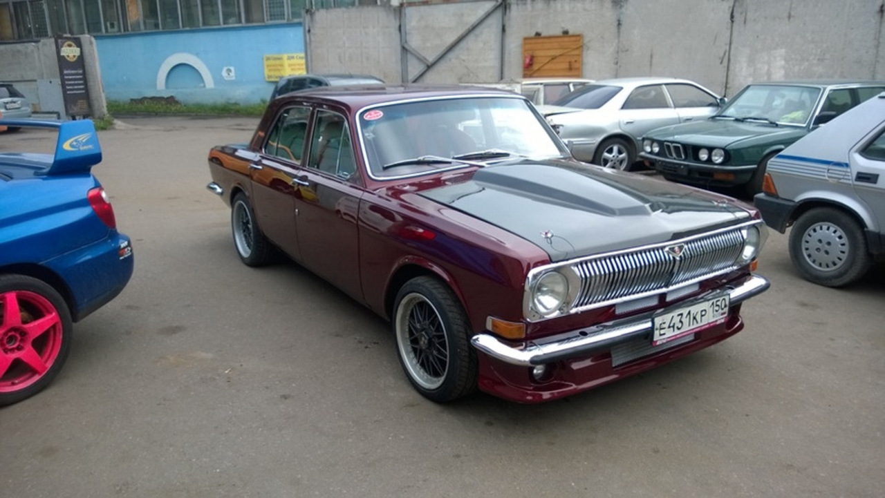 А вот еще один интересный автомобиль с крепким стилем и мощным двигателем - ГАЗ 24 3.0 turbo. Изначально на Волгу был установлен двигатель 1JZ-GTE и коробка автомат. Откатав автомобиль, было принято решение поставить другой японский движок - 2JZ-GTE VVT-i и механическую трансмиссию.280 лошадей под капотом Алексею показалось маловато. Он хотел сделать из русской Волги самый мощный и быстрый автомобиль – настоящего спортивного японца. Так было принято впихнуть турбину, а именно Garrett GTX3076R, под которую был изготовлен новый выпускной коллектор. Разместилась турба просто замечательно. Сейчас 3,0-литровый японский движок выдает целых 420 л.с. «ГАЗ-24М» получил дисковые тормоза с четырехпоршневыми суппортами фирмы Proma и тормозными дисками диаметром 330 мм. Спереди - шаровая подвеска от 31105 с амортизаторами Bilstein B6, сзади - независимая подвеска от Toyota Mark II с регулируемыми по высоте кайловерами HKS Hyper D, амортизаторы Koni.
