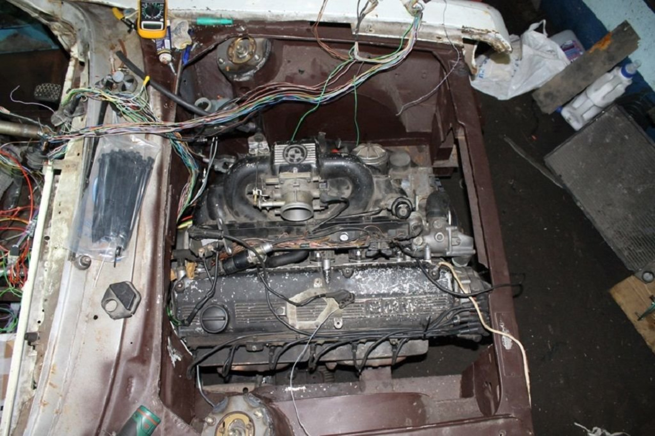А многие идут другим путем. Они не тюнингуют стоковые моторы отечественных автомобилей, а устанавливают новые (как отечественные, так и от различных иномарок), дорабатывая их. И опять же из машин получаются настоящие дорожные или гоночные монстры. Данный проект еще до конца не реализован. Подвеска здесь от трешки Бмв. Двигатель для универсала «Москвич» 2137 был также позаимствован от немца. Эта 3,5-литровая рядная шестерка мощностью 300 л.с. Коробка передач - «механика» Getrag.