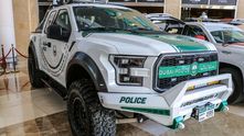 А вот мой самый любимый автомобиль дубайской полиции. Это огромный пикап Ford Raptor с практически неубиваемой подвеской. Не хотел бы я увидеть такой в зеркало заднего вида.
