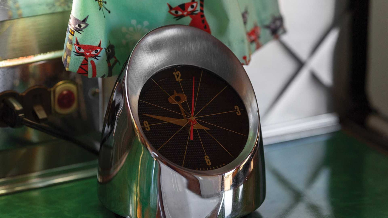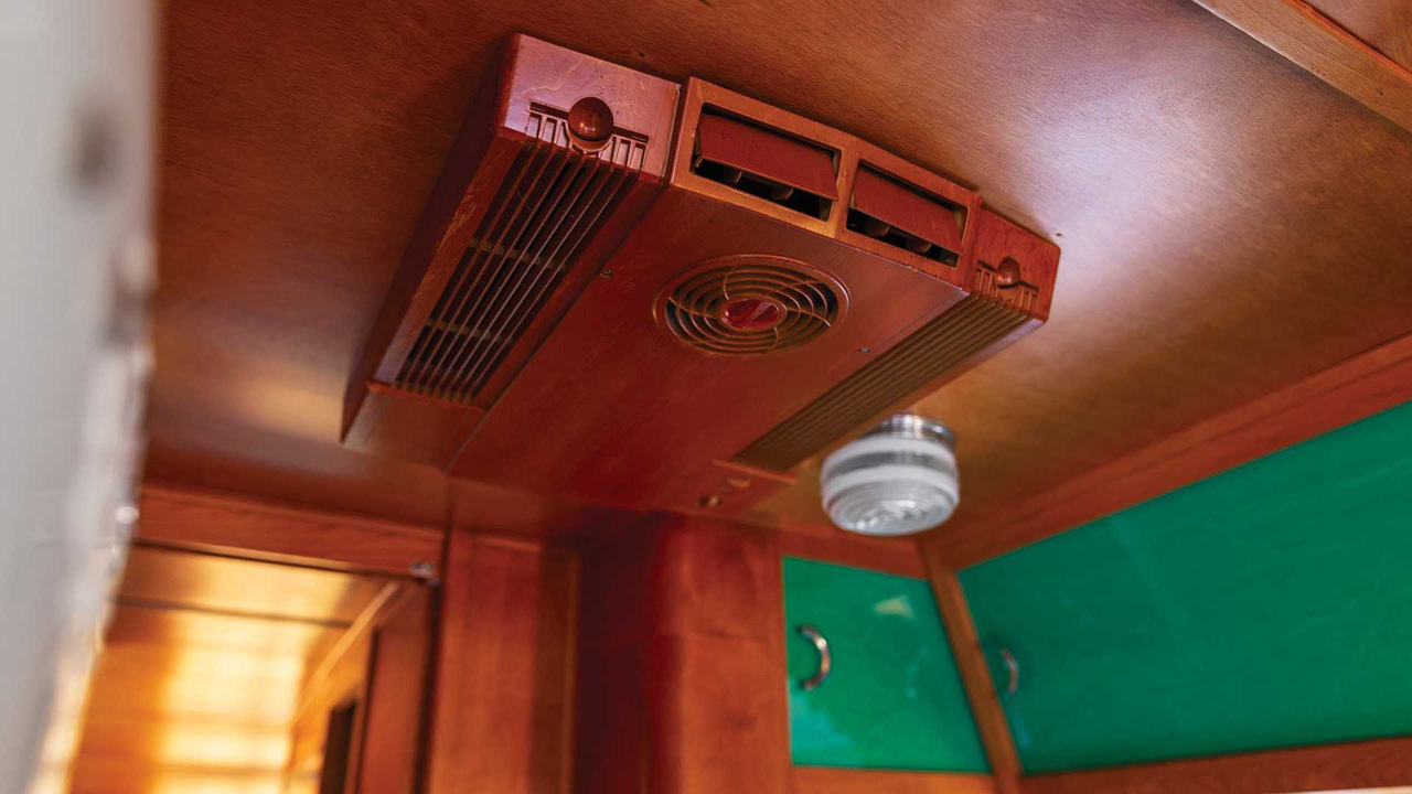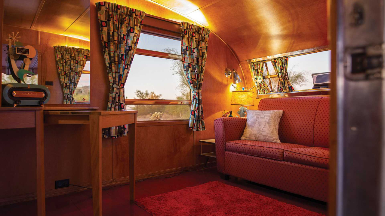 Интерьер буквально пропитан духом Америки 50-х годов. Тут преобладают тёмно-коричневые, ненасыщенные красные, ярко-синие и зеленые цвета, которые сочетаются с небольшим количеством полированного металла. В оснащение входит огромное количество олдскульных вещей, таких как часы Jefferson 500 и радио Zenith в общей зоне. И, конечно же, на окнах присутствуют миленькие шторы.