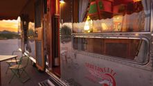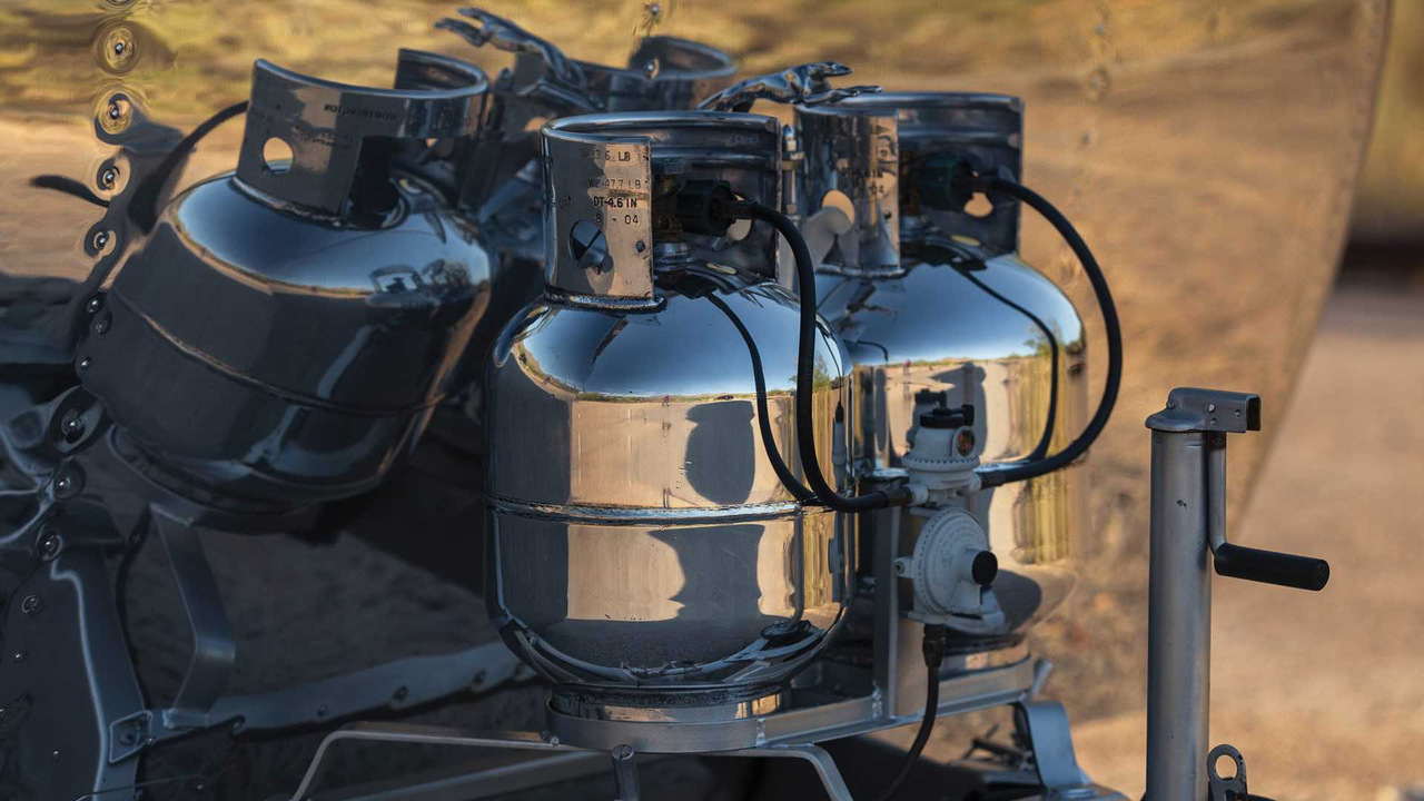 Трейлер Spartan смотрится просто великолепно благодаря полированным накрашенным бортам, дополненным такими же блестящими баллонами с пропаном. Трейлер был тщательно восстановлен внутри и снаружи, а также оснащен внешним тентом, набором стульев и столиков на открытом воздухе.