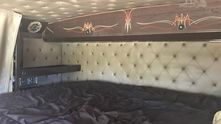 Тягач получил полностью новый и очень шикарный интерьер, отделанный белой кожей. Переднюю панель окрасили в цвет кабины и добавили пинстрайпинг - графические элементы, состоящие из тонких линий.